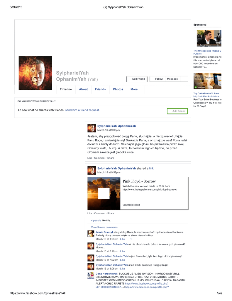 3/24/2015 (2) SylpharielYah OphanimYah Sponsored The Unexpected Phone C… PLR.me [Video Series] Check out how this unexpected phone call from CBC landed me on National TV... SylpharielYah OphanimYah (Yah) Timeline About Friends Add Friend Photos Follow Message More Try QuickBooks™ Free http://quickbooks.intuit.ca Run Your Entire Business with QuickBooks™ Try it for Free for 30 Days! DO YOU KNOW SYLPHARIELYAH? To see what he shares with friends, send him a friend request. Add Friend SylpharielYah OphanimYah March 16 at 9:05pm · Jestem, aby przygotować drogę Panu, słuchajcie, a nie zginiecie! Ufajcie Panu Bogu, i zmieniajcie się! Szukajcie Pana, a on znajdzie was! Posła ludzi do ludzi, i anioły do ludzi. Słuchajcie jego głosu, bo przemawia przez swój Gniewny wiatr, i burzę. A cisza, to zwiastun tego co będzie, bo przed Gromem zawsze jest głęboka cisza! Like · Comment · Share SylpharielYah OphanimYah shared a link. March 15 at 9:52pm · Pink Floyd Sorrow Watch the new version made in 2014 here : http://www.indeepsilence.com/pinkfloydsorrow/ YOUTUBE.COM Like · Comment · Share 4 people like this. View 3 more comments Jakub Graczyk stary dobry Rock,ile można słuchać HipHopu,stare Rockowe Ballady niosą czasem większą siłę niż teraz HHop March 16 at 1:23pm · Like · 1 SylpharielYah OphanimYah mi nie chodzi o rok, tylko o te słowa tych piosenek! Mocne... March 16 at 7:20pm · Like SylpharielYah OphanimYah to jest Proroctwo, tyle że z tego ułożył piosenkę! March 16 at 7:22pm · Like SylpharielYah OphanimYah a ten filmik, pokazuje Potęgę Boga! March 16 at 8:06pm · Like Dana Horochowski SUCCUBUS ALIEN INVASION NIMROD NAZI VRILL EISENHOWER NWO RAPISTS on UFOS NAZI VRILL MIDDLE EARTH IMPOSTER GOD NIMROD CHRONUS MOLOCH TUBAAL CAIN YALDABAOTH ALERT // CHLD RAPISTS https://www.facebook.com/profile.php? id=100006928818037... // https://www.facebook.com/profile.php? https://www.facebook.com/SylvestriaszYAH 1/42 3/24/2015 (2) SylpharielYah OphanimYah id=618577287&fref=ts// FRAUD GLOBAL DECEPTION https://www.facebook.com/SylvestriaszYAH ____________________________ RU GOING TO SCARBOROUGH FAIR WITH KALI MAA?? http://7thfire.biz/scarboroughfair555.htm MARs 14 GATE GOOD IDEA CENTRAL SUN + MILKY WAY SOLUNA69 MANDALA mammamilkmanna69 http://7thfire.biz/mammamilkmanna69.htm ( ILLUMINARIES) REAL ILLUMINATI OLYMPIAN not LILITH BLACK MAJICK QLIPPOTH TREE of DEATH (tubal cain freemasonry) // GALACTIC FEDERATION of VELON VRILL MARDUK RA LEGION DRACO FORCES of IGIGI LIZARDS BLEWUP TIAMAT ( TRUE BLUE PLANET ) UNIVERSAL CHURCH 555 OLYMPIA VALHALLA TIAMAT the ORIGINAL HEAVEN was ILLUMINATED on her OWN. Went to L.O im. Stefana Żeromskiego w Inowrocławiu Lives in Inowrocław From Inowrocław Born on November 29, 1989 (25 years old) 299 friends Became friends with Sekcja Bokserska Cuiavia Inowrocław and Przemyslaw Szczechowicz LOST TRIBES of ISRAEL are GAELIC FAERIES CELTIC (FEATHER/ PAATAL) not BLOODY DRUID BLACK WITCHES http://bayoffundy.ca/.../more evidenceoftemplar.../ // https://www.facebook.com/photo.php? fbid=444067619076877 / NEWSFLASHDANA // tworowwampum / HUMAN HELP Made in cANADa! http://7thfire.biz/ . http://8thfire.biz/ , http://uramerica.ca/ , http://canadastreetnews.biz/ , http://serenityglobal.net/ , http://serenitystreetnews.com/ , http://jrgenius.ca/ , Mark Anthony March 22 at 7:59pm · Dear Whirled! lAurA Is Shy Lo! The Great One Loves U R Meow Immortal Wit Nest Egg Timermaid? Merry Medicine Heal Me ET Again, I don't know wear! But i swear two care beyond your wildest dream sleepers! Just you watch! we'll be the living word and testament weave Magdalene bean WAY Ting Four See Sons Inn One Hundred ways two please your soul light of the world reaching for the heavens above top secret love! Incredible Is Neo The One! Yes, It Really Is Us? I Cross The Rainbow Bridge In 5 Months! Wake Up! OX https://www.youtube.com/watch?v=lp0BfRxIZfI FRIENDS · 299 Alabaster Zion Magdalena Grabowska Eryk Babiński Marcin Jakub Cichocki Dallas, Texas 1 Mutual Friend Add Friend 1 min · Like · Remove Preview Fabian Wrączewski Małgorzata Blige Angelika Stopczyńska Damian Kubiszewski Sekcja Bokserska Cuiavia Inowrocław Write a comment... SylpharielYah OphanimYah Damian Kowalewski PHOTOS March 11 at 3:34pm · jak zmienić drugiego człowieka, i jak przemówić do niego? Skoro człowiek sam kieruje się własnymi zamysłami, i kroczy niedobrą drogą. Świat upada coraz niżej, i będzie coraz gorzej. Like · Comment · Share 5 people like this. Jakub Kulczyński Krótko!!! March 11 at 3:39pm · Like Write a comment... SylpharielYah OphanimYah shared a link. March 10 at 12:42pm · Droga Objawienia. Początek końca Apokalipsa (Koniec Świata). Cały Film Lektor PL Ateizm Urojony GOOGLE: cyber oleśnica ogłoszenia Subskrybuj także nasz kanału na YouTube. Droga Objawienia.... YOUTUBE.COM PLACES https://www.facebook.com/SylvestriaszYAH Like · Comment · Share 2/42 3/24/2015 (2) SylpharielYah OphanimYah SylpharielYah OphanimYah likes this. Write a comment... Paryż Francja About 2 months ago SylpharielYah OphanimYah shared a link. March 9 at 3:24am · Paris, France About 2 months ago MYSTERY BABYLON Song (Revelation 1718) by miYah MUSIC FOR THE FINAL GENERATION Modern prophetic music with haunting lyrics based on Mystery Babylon from the Book of Revelation (1518) Judgment is coming ... Niemcy, Berlin About 2 months ago YOUTUBE.COM Paryż, Francja, Wieża Eiffla — with Sylwia Wiśniewska Daniel Grzanka. About 2 months ago Like · Comment · Share SylpharielYah OphanimYah likes this. LIKES · 43 SylpharielYah OphanimYah united states, it is a satanic sect of the Illuminati, who sacrifice of infants and women. And now they want to kill the mass of people, and spread the pandemic. Flee the people with him, because it falls on the scourge of God! ... See More Upadł Wielki Babilon! Apokalipsa rozdział 18 Jacob Hebrew calendar Tłumaczenie: Biblia Warszawska, Apokalipsa św. Jana... Car