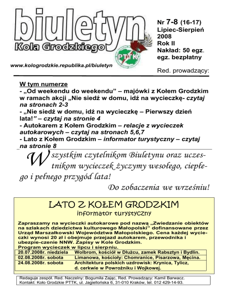 "Biuletyn" nr 7-8 (16-17) - Lipiec-Sierpień 2008