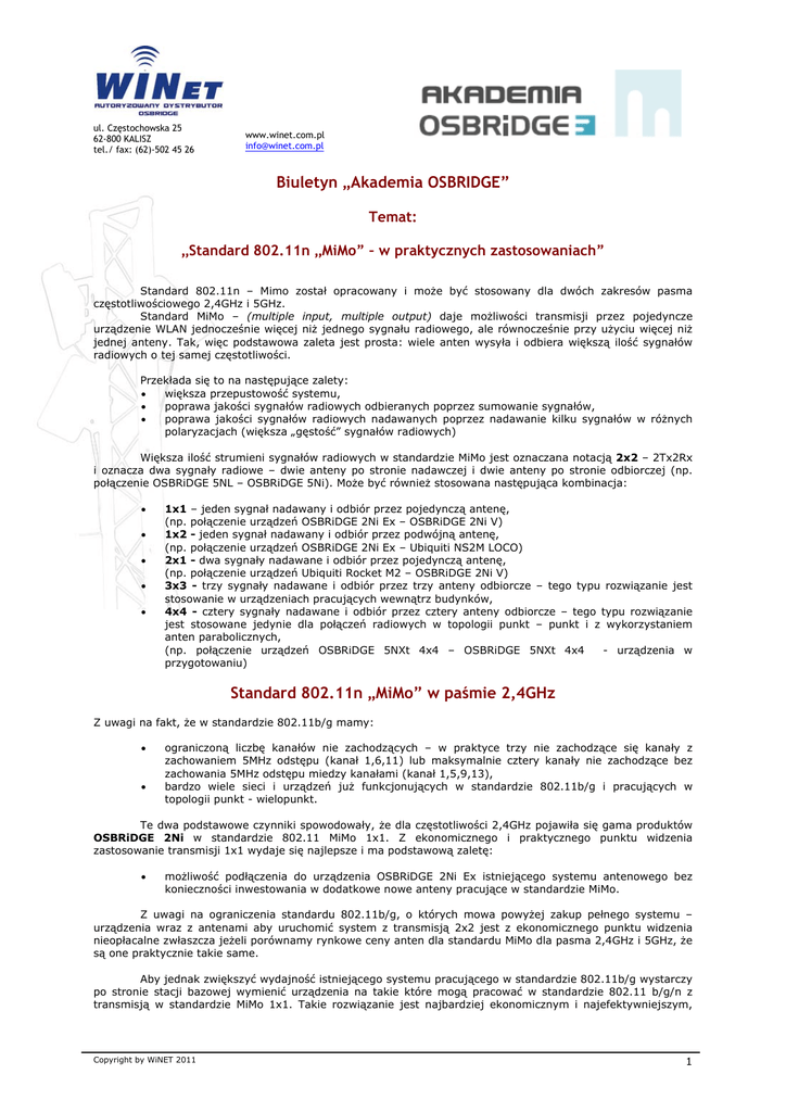 Biuletyn „Akademia OSBRIDGE” Standard 802.11n „MiMo” w