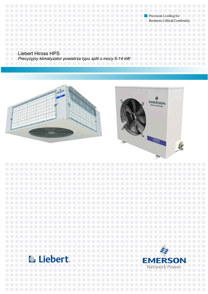 Liebert Hiross HPS Precyzyjny klimatyzator powietrza typu split o mocy 6-14 kW Klimatyzacja precyzyjna Liebert HIROSS HPS Efektywny, kompaktowy, elastyczny! HPS jest najnowszym precyzyjnym klimatyzatorem powietrza typu split zaprojektowanym tak, aby gwarantował odpowiednie warunki środowiska technologicznego, a zwłaszcza w stacjach przekaźnikowych BTS telefonii mobilnej GSM i węzłów NodeB. Dzięki zastosowaniu efektywnego systemu dystrybucji powietrza opartego na koncepcji chłodzenia wyporowego, uŜyciu elementów o najwyŜszej efektywności i kompaktowej konstrukcji w nowatorskiej wersji freecooling, klimatyzator charakteryzuje się skutecznością, zmniejszonym zuŜyciem energii i kompaktowymi wymiarami. HPS jest przy tym wyjątkowo elastyczny dzięki moŜliwości wyboru konfiguracji w zaleŜności od stawianych priorytetów roboczych (poziom emitowanego hałasu, zakres temperatur roboczych, itd.) i oraz poŜądanych funkcji (freecooling, awaryjny freecooling, podgrzewanie, itd.). Optymalna dystrybucja powietrza HPS podaje schłodzone powietrze wprost na dół w obszar poboru powietrza przez racki i odbiera podgrzane powietrze od źródeł ciepła, zasysając je przez przednią i boczne ścianki obudowy, w ten sposób ograniczając skutecznie ograniczając mieszanie się zimnego powietrza z klimatyzatora z podgrzanym powietrzem z racków z podwójnie korzystnym skutkiem: klimatyzator precyzyjnie podaje schłodzone powietrze w miejsce poboru przez rack, a chłodzi tylko gorące powietrze zassane z racka, zwiększając w ten sposób skuteczność chłodzenia. Taki sposób dystrybucji powietrza HPS gwarantuje utrzymanie właściwej temperatury wewnątrz racków, wyŜszą efektywność chłodzenia oraz brak gorących punktów w obiekcie. Oszczędność energii i miejsca Opcja freecooling umoŜliwia wyłączenie spręŜarki i wykorzystanie do chłodzenia obiektu powietrza z zewnątrz, dzięki czemu potrzebne do tego roczne celu zuŜycie energii wyczuwalnie spada. Precyzyjna modulacja w pełnym zakresie umoŜliwia niezmiennie utrzymanie zadanej temperatury w obiekcie. Instalacja klimatyzatora nie wymaga więcej miejsca, gdyŜ nowatorski rotacyjny system freecoolingu zapewnia skuteczne chłodzenie bez potrzeby zwiększania powierzchni instalacyjnej. Maksymalna niezawodność obiektu Węzły zdalne muszą wymieniać dane bez przerwy, pracując zawsze w odpowiednich warunkach klimatycznych. Dlatego niezawodność klimatyzatora nie jest opcją, ale jest koniecznością. Zastosowane najnowocześniejsze elementy, takie jak spręŜarka typu scroll i wentylatory wtykowe oraz wymienniki ciepła o zwiększonej powierzchni i przepływie umoŜliwiają pracę klimatyzatora 24 godziny na dobę przez 365 dni w roku. Poziom niezawodności klimatyzatora moŜna zwiększyć wybierając w przypadku zaniku napięcia w głównej sieci zasilającej opcję chłodzenia awaryjnego umoŜliwiającą podtrzymanie działania klimatyzatora z dodatkowych źródeł energii, takich jak akumulatory 48V lub niezaleŜny generator prądu zmiennego. Wybór właściwego klimatyzatora W kaŜdej wybranej konfiguracji HPS zapewnia optymalną dystrybucję powietrza, skuteczność, oszczędność energii, niezawodność i kompaktowe rozmiary. Zaawansowana wersja klimatyzatora HPS (45 dB(A) w odległości 3 m, 50°C przy poborze powietrza z wewnątrz dla 30° C i wilgotno ści wzgl. 35%) moŜe być zastosowana tam, gdzie wymagania środowiskowe pod względem poziomu emitowanego hałasu lub ekstremalnych temperatur roboczych są szczególnie wysokie. Dane techniczne Model HPSE+HPSC 06 Miejsce instalacji części parownikowej Zasilanie główne Zasilanie awaryjne (opcja) 08 14 230/1N/50 400/3N/50 400/3N/50 400/3N/50 400/3N/50 48VDC lub 230/1N/50 kW kW kW kW kW m3/h 6,4 6,4 1,7 0,24 0,18 1,510 8,1 8,1 2,2 0,24 0,35 2,360 10,1 10,1 3,0 0,12 0,35 2,360 12,5 12,5 3,7 0,15 0,33 2,770 14,6 14,6 4,6 0,15 0,33 2,750 m3/h 2,970 2,970 6,300 5,675 5,675 dB(A) 48,5 48,5 52 54 56 dB(A) 58 62,5 62,5 63 63 °C 52 50 50 50 50 Układ chłodniczy Typ i liczba spręŜarek Czynnik chłodniczy Urządzenie rozpręŜne typu Scroll / 1 R407C Zawór termostatyczny Wentylator parownika Liczba/typ/wersja biegunów Ochrona napędu/silnika 1 / osiowa / 4 Bezpośredni / IP44 Bezpośredni/IP54 Wentylator skraplacza Ilość/typ/liczba biegunów Ochrona silnika napędu Układ sterowania 1 / osiowy / 6 2 / osiowy / 6 Bezpośredni / IP54 Z regulacją prędkości Filtr powietrza Rodzaj filtra / klasa Harmonijkowy / G3 Grzanie Podgrzewanie elektryczne (opcja) Działanie HPS: pobór powietrza z najgorętszej części pomieszczenia (góra), nadmuch zimnego powietrza wprost na wyposaŜenie elektroniczne. 12 Podsufitowe Osiągi Całkowita moc chłodnicza(1) Wydajność chłodnicza jawna(1) Moc spręŜarki(1) Moc wentylatora skraplacza(1) Moc wentylatora parownika(1) Wydatek powietrza parownika Maks. wydatek powietrza skraplacza Poziom ciśnienia akustycznego zewnątrz(2) Poziom ciśnienia akustycznego wewnątrz(2) Maks. temperatura otoczenia(3) Szafa Rama Malowanie Rodzaj i grubość izolacji Szerokość parownika Głębokość parownika Wysokość parownika Masa parownika Szerokość skraplacza Głębokość skraplacza Wysokość skraplacza Masa skraplacza 10 KW - / mm mm mm mm kg mm mm mm kg 1,5 50 80 4,5 Stal ocynkowana Poliester-RAL 7035 Poliuretan, klasa A1/10 800 900 800 900 310 375 53 53 58 58 920 920 390 390 840 1190 82 97 103 111 HPS w trybie pracy rozpręŜania bezpośredniego: pobór gorącego powietrza z trzech stron dla zwiększenia sprawności energetycznej (1) Dla następujących warunków: 30°C, wilg. wzgl. 35%, pobór powietrza z wewnątrz, 35°C na zewnątrz. (2) Mierzone dla temperatury zewnętrznej 35°C w odległo ści 2 m od klimatyzatora w wolnej przestrzeni (nastawy fabryczne). (3) Dla poboru powietrza 30°C z wewnątrz Dane dla wersji HPS standard (bez opcji) HPS w trybie freecooling: wykorzystanie do chłodzenia powietrza z zewnątrz dla maksym
