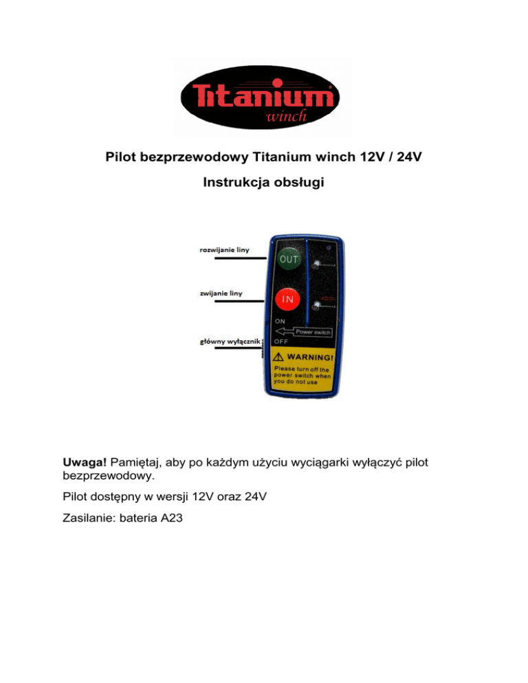 Pilot bezprzewodowy Titanium winch 12V / 24V Instrukcja obsługi