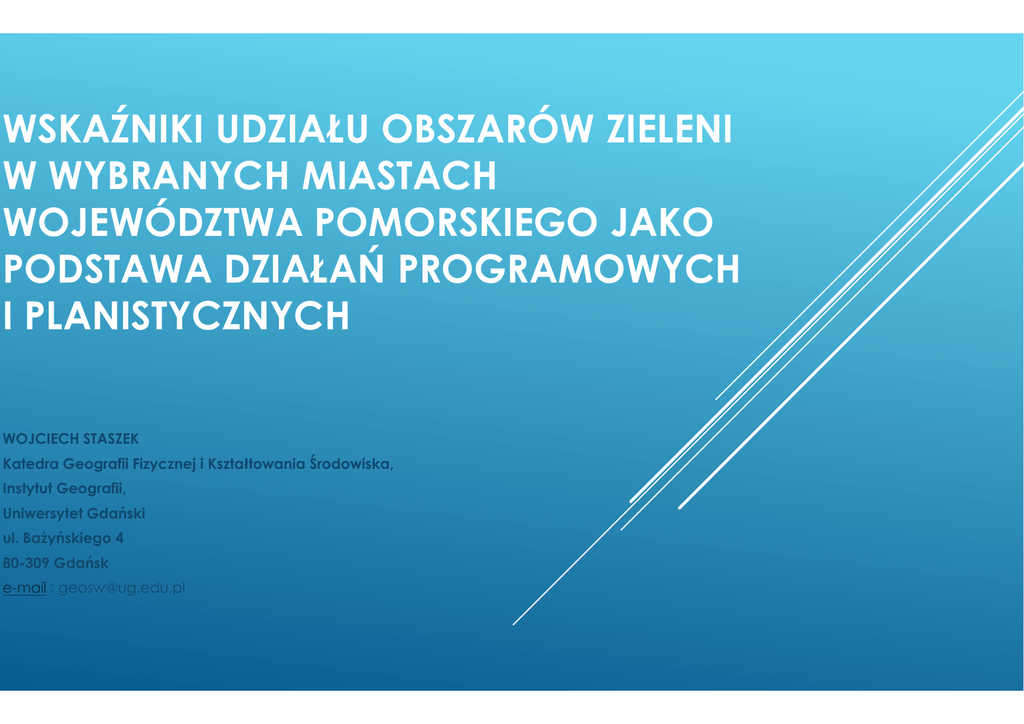 wskaźniki udziału obszarów zielen w wybranych miastach