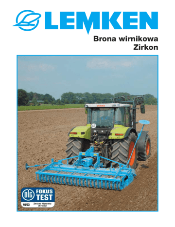 Brona wirnikowa Zirkon Zmiana kierunku obrotów LEMKEN Zirkon Idea Wykorzystywanie narzędzi aktywnych w rolnictwie przybiera ciągle na znaczeniu. Dzięki możliwości łączenia z innymi narzędziami każdy przejazd można wykonać szybciej i efektywniej. Brona wirnikowa zapewnia intensywne mieszanie i wytwarzanie struktury gruzełkowatej nawet do głębokości 15 cm. Aktywne narzędzia są w stanie przygotować optymalne warunki siewu w praktycznie w każdych warunkach glebowych, także na glebach suchych, zaskorupionych lub ciężkich i zlewnych. Intensywność uprawiania można regulować prędkością jazdy i liczbą obrotów wałka przekaźnikowego, a także ustawieniem przełożenia w przekładni bron. Dzięki temu można uzyskać równomierne doprawienie gleby w jednym przejeździe. Brony wirnikowe Zirkon firmy LEMKEN odpowiadają na największe wyzwania w nowoczesnych gospodarstwach rolniczych. Brona wytrzymuje doskonale długotrwałe obciążenia w konwencjonalnej, jak i bezorkowej uprawie roli. Nadaje się do zawieszania tak na tylnym, jak i przednim TUZ-ie ciągnika. Perfekcyjność w każdej kombinacji Z tyłu i z przodu Zaczepiana Brona wirnikowa Zirkon zawieszona na przednim podnośniku ciągnika może być wykorzystywana do uprawy na szczególnie ciężkich glebach lub w gospodarstwach uprawiających rośliny specjalne. Utrzymywanie głębokości roboczej oraz dobre dogniecenie możliwe jest dzięki różnego typu walcom. Zawieszana brona wirnikowa Zirkon, z nabudowanym siewnikiem Solitair lub Saphir, staje się bardzo wydajnym zestawieniem do siewu roślin. Maszyny o szerokości 4 do 6 metrów są składane hydraulicznie do szerokości transportowej nie przekraczającej 3 metrów. Do przezbrojenia nie potrzeba wcale dużo czasu. Jest to oszczędność, która się opłaca. Zaczepiana brona wirnikowa Zirkon z siewnikiem Solitair jest bardzo wydajnym zestawem uprawowo – siewnym dla gospodarstw nastawionych na produkcję roślinną. Jej zaletą jest uprawa nie niszcząca struktur gleby, jak też łatwy transport. Wystarczy wyjąć kilka bolców aby móc ją rozłożyć. Z równym powodzeniem pracuje solo, jak i połączona z trzypunktowym układem zawieszenia z innymi maszynami. Precyzyjna technika od LEMKEN-a Wymiary Wanna z kołami zębatymi Zirkon 10 Zirkon 7 łożysko rolkowe wałek uszczelniający uszczelka filcowa nasączona smarem wzmocniona tuleja podkładka uszczelniająca płyta mocowania zębów zatrzask W zależności od warunków użytkowania, ciągnika oraz uprawianej powierzchni można wybrać model Zirkon 7 lub Zirkon 10. Aby uzyskać maksymalną stabilność i żywotność wałek z tarczą do mocowania zębów stanowi jeden wzmocniony odlew. Zirkon 10 jest podobnej budowy jak Zirkon 7, lecz wyposażony w mocniejsze łożyska, wałki o większej średnicy oraz spód wanny o podwyższonej trwałości. Sercem brony wirnikowej Zirkon jest wanna z kołami zębatymi. Wykonano ją jako jedną całość z grubościennej stali z wspawanymi miejscami łożyskowania. Wanna i pokrywy są zespawane stanowiąc wzmocnienie. Koła zębate leżą wewnątrz bardzo stabilnie. Lekka i cicha praca oraz precyzyjny obrót nośnika zębów gwarantuje długą żywotność brony wirnikowej Zirkon. Wysoka wydajność dzięki stabilności Łożyskowanie Nośnik zębów nośnik zębów wanna z kołami zębatymi W specjalnym centrum obróbki miejsca łożyskowania, po wspawaniu ich do wanny są specjalnie dociskane. Zapewnia to precyzyjne osadzenie łożysk i w konsekwencji bardzo cichą pracę brony wirnikowej. Dwustronne uszczelnienie łożysk rolkowych i dodatkowa specjalna uszczelka chronią łożysko przed dostawaniem się brudu, uszkodzeniami oraz pracą na sucho. Na każdy metr szerokości maszyny przypadają cztery nośniki zębów. Zęby każdego nośnika są przesunięte w stosunku do bocznych o kąt 90 °. Sprawia to, że zęby podczas pracy przechodzą obok siebie, co daje równomierne przeniesienie mocy z zębów nawet na najcięższych glebach. Zapewnia to cichość pracy i brak szarpania. Uszkodzenia, których przyczyną mogą być kamienie są zminimalizowane dzięki owalnemu kształtowi nośników zębów. Nowoczesna przekładnia Przekładnia z wymiennymi kołami zębatymi Przekładnia DualShift Zmiana kierunku obrotów Wszystkie części przekładni brony Zirkon 7 są wzmocnione, a wały i koła zębate mają dodatkowo hartowaną powłokę zewnętrzną. Właściwą liczbę obrotów ustawiamy poprzez wymianę kół zębatych. Wypust dla wałka przekaźnikowego umiejscowiony jest pośrodku, co chroni zarówno przekładnię jak i sam wałek. Innowacyjna przekładnia Dual-Shift brony wirnikowej Zirkon 10 powstała jako przełączalna przekładnia z kołami stożkowymi. Dzięki łatwo dostępnej dźwigni można szybko zmienić liczbę obrotów. Przy prędkości WOM wynoszącej 1000 obr./min. da się zmieniać liczbę obrotów w bronie wirnikowej z 330 na 440 obr./min. Przekładnia Dual-Shift pozwala dodatkowo zmienić kierunek obrotów w bronie. Po poluzowaniu trzech śrub, za pomocą śruby rzymskiej, przesuwamy o 20 mm w lewo lub prawo całą przekładnię. W zależności od kierunku przesunięcia napędzane będzie lewe lub prawe koło zębate w bronie wirnikowej. Wszystko w jednym narzędziu Kierunek obrotów Szybka wymiana zębów Allround Zęby Brona wirnikowa Zirkon 10 wyposażona jest standardowo w system szybkiej wymiany dwustronnie zaostrzonych zębów Allround. Każda para zębów jest zabezpieczona na nośniku zatrzaskiem. Wymiana zębów odbywa się całkowicie bez użycia narzędzi. Elementy spornikowe pod nośnikiem zębów zapewniają dużą, wolną przestrzeń między nośnikiem zębów a wanną o wymiarach 340 x 20 mm. Zapobiega to zakleszczaniu się tam kamieni. Specjalny sposób hartowania sprawia, że zęby są szczególnie odporne na złamanie i ścieranie. Pancerowanie zębów w strefach szczególnie narażonych na ścieranie przedłuża znacznie i