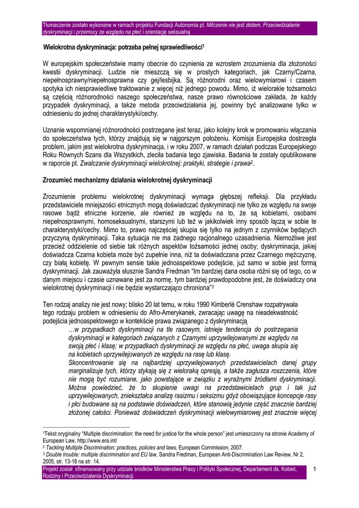 Wielokrotna dyskryminacja: potrzeba pełnej sprawiedliwości1 W