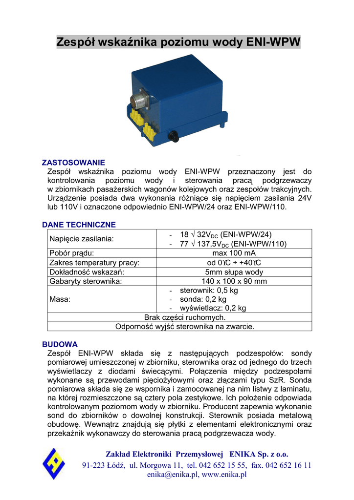 Zespół wskaźnika poziomu wody ENI-WPW