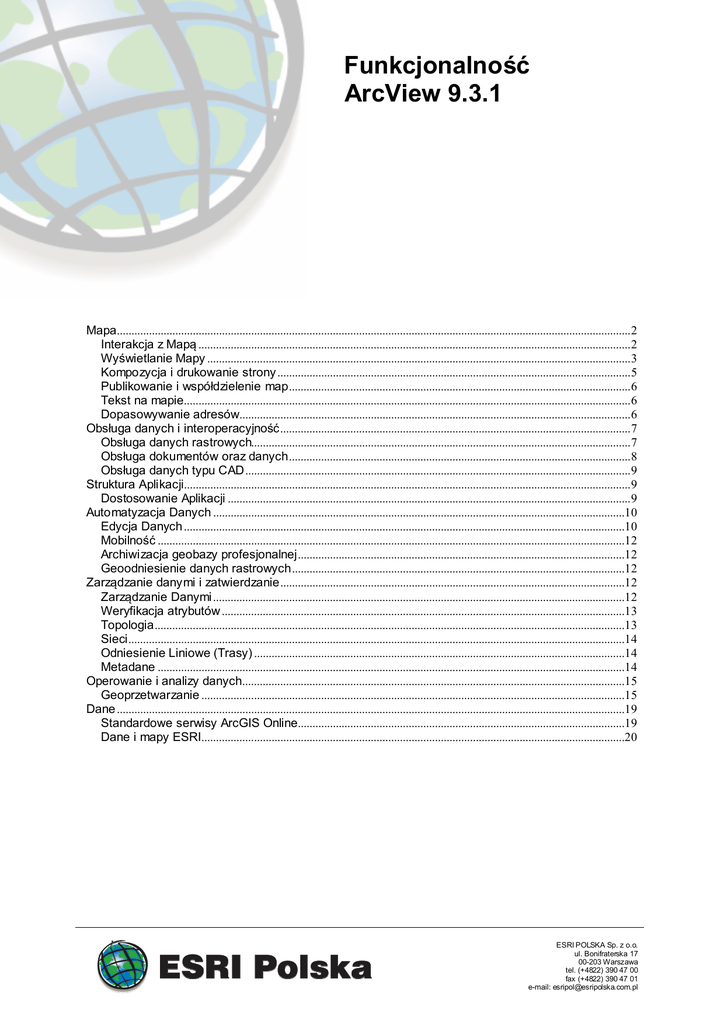 Funkcjonalność ArcView 9.3.1