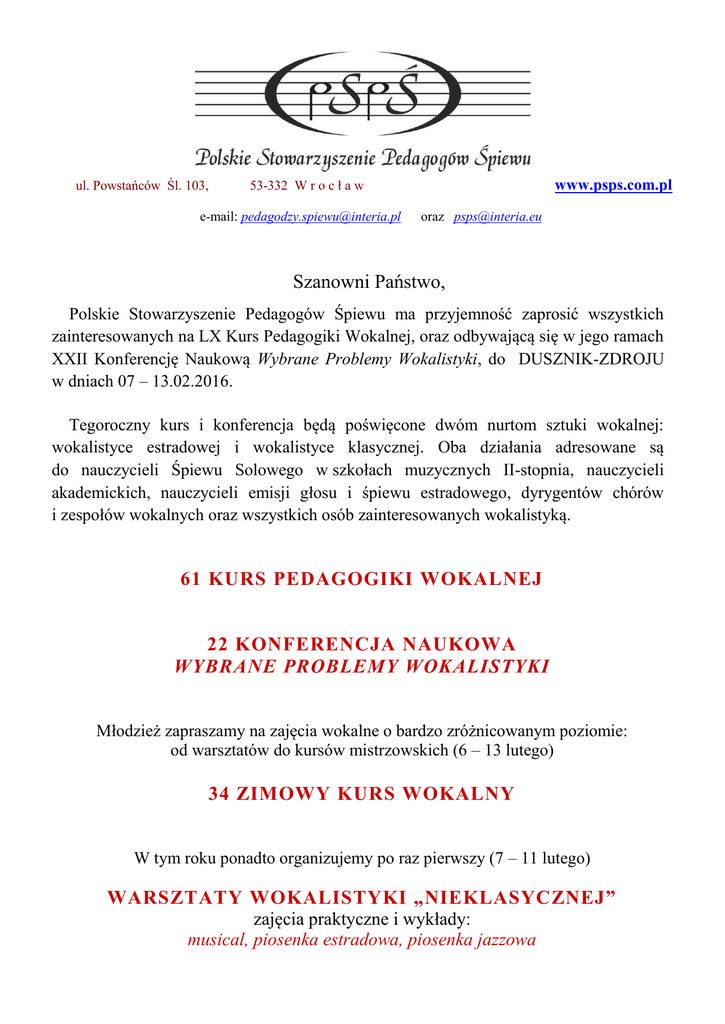 9 P S P Ś 9 - Polskie Stowarzyszenie Pedagogów Śpiewu