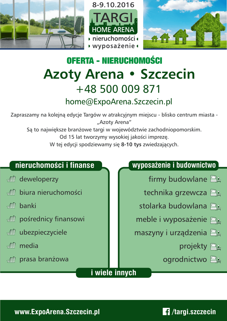 8-9.10.2016 TARGI HOME ARENA OFERTA - NIERUCHOMOŚCI Azoty Arena • Szczecin +48 500 009 871 [email protected] Zapraszamy na kolejną edycje Targów w atrakcyjnym miejscu - blisko centrum miasta „Azoty Arena” Są to największe branżowe targi w województwie zachodniopomorskim. Od 15 lat tworzymy wysokiej jakości imprezę. W tej edycji spodziewamy się 8-10 tys zwiedzających. nieruchomości i finanse wyposażenie i budownictwo firmy budowlane deweloperzy technika grzewcza biura nieruchomości stolarka budowlana banki pośrednicy finansowi meble i wyposażenie ubezpieczyciele maszyny i urządzenia projekty media ogrodnictwo prasa branżowa i wiele innych www.ExpoArena.Szczecin.pl /targi.szczecin 8-9.10.2016 ORGANIZATOR BIURO OBSŁUGI WYSTAWCÓW Agencja Artystyczno-Promocyjna ul. Wł. Szafera 3/5/7, Szczecin www.ExpoArena.szczecin.pl [email protected] tel. +48 500 009 871 Expo Arena Marek Zajdel ul. Wł. Szafera 3/5/7, Szczecin www.ExpoArena.szczecin.pl [email protected] tel.: +48 503 118 360 TARGI HOME ARENA OFERTA - NIERUCHOMOŚCI POWIERZCHNIA TARGOWA STOISKO 2500 zł Powierzchnia targowa o powierzchni 6 m2 W cenie stoiska Wystawca otrzymuje również: fryz z nazwą firmy/logo, stolik, 2 krzesła, oświetlenie, kosz, gniazdo 230 V, wpisy do publikacji i Internetu, identyfikatory) Każdy dodatkowy metr stoiska: 400 zł/m2 USŁUGI DODATKOWE 400 zł PREZENTACJA MULTIMEDIALNA 3-minutowe prezentacje Państwa firmy (co 30 minut, przez 2 dni targowe). DUŻE EKSPOZYCJE PRZED HALĄ Balon, namiot, samochód służbowy itp. 300 zł Mniejsza, stojąca reklama tzw. potykacz 150 zł OFERTA DODATKOWA DLA OSÓB I FIRM NIE BĘDĄCYCH WYSTAWCAMI TARGÓW STOJAKI REKLAMOWE PRZY WEJŚCIU 300 zł Możliwość ustawienia stojaka reklamowego z materiałami Klienta przy wejściu na halę targową. 2 Powierzchnia przeznaczona na jeden stojak to 1 m , mierzone po podłodze WSTĘP HOSTESSY NA TARGI Kolportaż materiałów reklamowych poprzez hostessę 1 DZIEŃ 850 zł Kolportaż materiałów reklamowych poprzez hostessę 2 DNI 1400 zł REKLAMA W GAZECIE TARGOWEJ* Gazeta targowa, wydawana specjalnie z okazji Targów, format A4, nakład 4000 egzemplarzy. OKŁADKA PRZÓD STRONA A4 FORMAT A5 OKŁADKA WEWNĘTRZNA OKŁADKA TYŁ 1500 zł 600 zł 350 zł 1500 zł 2000 zł * Szczegółowy cennik Gazety Targowej jest zawarty na osobnej ofercie. Bezumowne skorzystanie z oferty Targów Nieruchomości w jakiejkolwiek postaci na całym terenie AZOTY ARENA wiąże się z naliczeniem opłaty w wysokości 10 krotności normalnej stawki cennikowej.