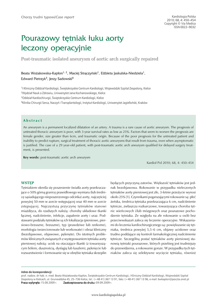 Pourazowy tętniak łuku aorty leczony operacyjnie