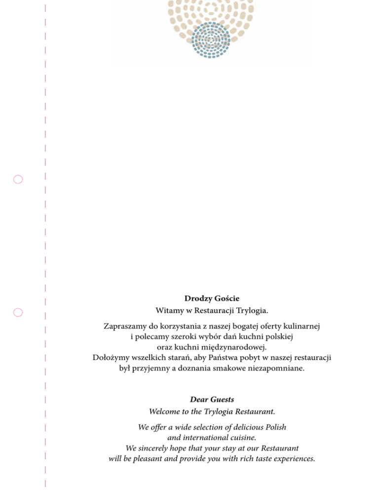 Drodzy Goście Witamy w Restauracji Trylogia. Zapraszamy do