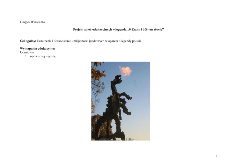 legendy na lekcjach języka polskiego – projekt edukacyjny