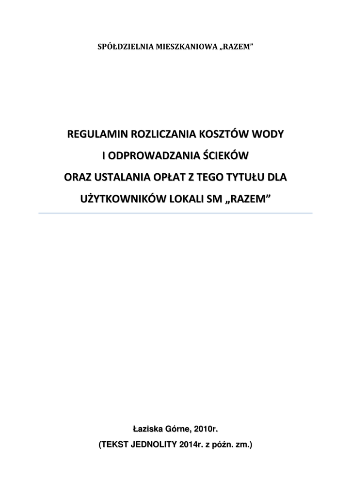 REGULAMIN ROZLICZANIA KOSZTÓW WODY I