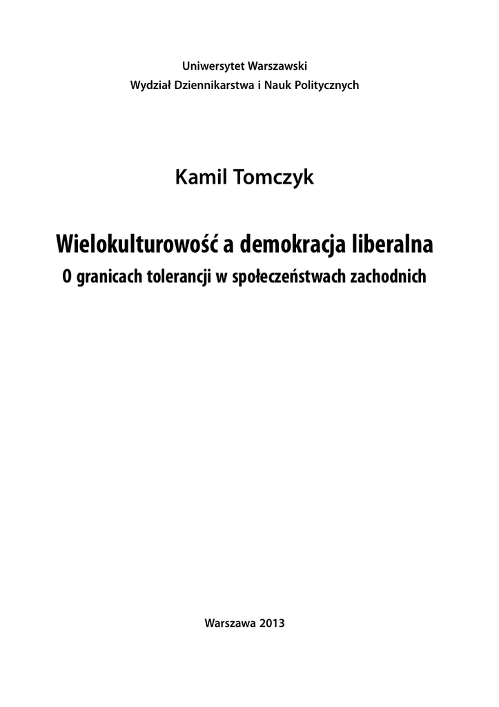 Kamil Tomczyk Wielokulturowość a demokracja liberalna O