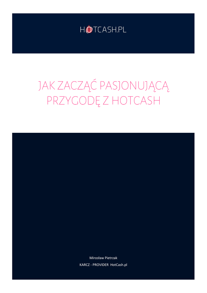 Mirosław Pietrzak KARCZ - PROVIDER HotCash.pl Spis treści Słowem wstępu ................................................................................... 2 Czym zajmuje się HotCash.pl ............................................................... 2 Podstawowe modele zarobku ............................................................. 3 Programy CPC – jak promować aby nie dostać bana ........................... 4 Narzędzia dla webmasterów – kilka słów ............................................ 6 Podstawowe sposoby promocji ........................................................... 7 Słowniczek pojęć ............................................................................... 10 Wsparcie techniczne, merytoryczne, kontakt w razie chęci współpracy ........................................................................................ 11 Słowem wstępu Czytasz ten tekst, ponieważ zaczynasz przygodę z zarabianiem w internecie za pośrednictwem programów partnerskich. Chociaż, być może przybyłeś z innego serwisu, gdzie ktoś nie był w stanie udzielić Ci kompetentnej pomocy? Nie wnikajmy w to. W niniejszym poradniku znajdziesz najważniejsze informacje dotyczące tego biznesu. Będziesz mógł nabyć nową wiedzę, albo zweryfikować dotychczasowe wiadomości. Uwaga, to nie jest poradnik przedstawiający genialną metodę, pozwalającą na wygenerowanie oszałamiających zarobków. To poradnik dla początkujących, który pomoże im odnaleźć się w tym środowisku. Dołożę wszelkich starań, aby język był zrozumiały i każdy mógł wszystko pojąć, niemniej jednak, jeśli po lekturze, nadal będziesz miał jakieś pytania, czy wątpliwości to chętnie odpowiem za pośrednictwem kanałów kontaktowych dostępnych po zalogowaniu na swoje konto w HotCash. Czym zajmuje się HotCash.pl HotCash.pl to platforma afiliacyjna, która oferuje niemal niezliczone (docelowo słowo „niemal” nie będzie występowało ) sposoby zarabiania pieniędzy w internecie. Specjalnością HotCash są programy partnerskie. Każdy partner jest traktowany indywidualnie, czy to jeśli chodzi o niestandardowe konfiguracje stawek, czy wsparcie techniczne / merytoryczne. HotCash to serwis kompleksowo podchodzący do tematu. Nie skupiamy się wyłącznie na jednej wąskiej funkcji, czy dziedzinie, a dokładamy wszelkich starań, aby umożliwić zarabianie na każdej możliwej płaszczyźnie. Naszym celem jest skupienie najlepszych reklamodawców i wydawców w jednym miejscu oraz powiązanie ich interesów. Wspieramy również webmasterów oferując im innowacyjne rozwiązania, które mogą wykorzystać w ramach własnych stron, a co za tym idzie efektywnie monetyzować ruch generowany przez ich serwisy. Oferujemy płatności SMS Premium. Oznacza to, że ktoś kto chce odblokować daną treść, czy zapisać się do konkursu musi wysłać SMS-a. Innym rodzajem jest model subskrypcji SMS. Każdy system ma swoje wady i zalety, niemniej jednak nasze doświadczenie pokazuje, że system SMS Premium ma bardziej pozytywny oddźwięk jeśli chodzi o użytkowników generujących leady. Są jednak programy i grupy docelowe, gdzie najlepszym wyborem będą właśnie subskrypcje, jednak zdecydowana większość kampanii promocyjnych odniesie większy sukces, kiedy zastosujemy model SMS Premium. Podstawowe modele zarobku HotCash oferuje możliwość zarabiania w modelach: CPL (Cost per Lead) – model oferujący zysk za wygenerowaną akcję. Oznacza to, że pieniądze dostajemy w momencie, kiedy ktoś, korzystając z linku referencyjnego wykona jakąś akcję. W chwili obecnej może to być rejestracja w grze, wysłanie SMS-a tudzież wypełnienie formularza (wniosku kredytowego). Jest to model pozwalający na osiągnięcie wysokich zysków za jednego leada, niemniej jednak wkład pracy, jaki musi wykonać odwiedzający jest stosunkowo wysoki, co sprawia, że nasza promocja musi być przygotowana tak, aby ktoś kto odwiedza nasz link nie zniechęcił się tym, że trzeba wysłać SMS-a. CPC (Cost per Click) – model skierowany wyłącznie dla właścicieli własnych stron internetowych, tudzież stron facebook’owych. Jeśli chodzi o CPC to wynagrodzenie otrzymujemy w momencie, kiedy ktoś kliknie w nasz link partnerski. Nie trzeba wysyłać SMS-ów czy wypełniać ankiet. Ważne tutaj jest to, aby przed przystąpieniem do promocji zapoznać się z regulaminem, gdyż promocja nie może się odbywać w trybach niedozwolonych. CPS (Cost per Sale) – model dla ambitnych osób, które nie boją się wyzwań. Jest to najbardziej dochodowa kategoria zarobkowa, niemniej jednak, najbardziej wymagająca. Zamieszczamy tutaj, bowiem, dobra intelektualne (poradniki, książki itp.). Za każdą wygenerowaną sprzedaż, nasz partner otrzymuje wynagrodzenie. Jak już wspomniałem, jest to nie lada zadanie, niemniej jednak ułatwia je fakt, że oferujemy wiele rodzajów płatności, który każdemu powinien przypaść do gustu. Promocja powyższych trybów zarabiania odbywa się za pośrednictwem programów. Są to odpowiednio przygotowane strony internetowe, na które przekierowuje link partnerski generowany na stronie każdego programu. Jak dotychczas kategoria CPL jest na HotCash najbardziej rozbudowana, ponieważ to od niej się wszystko zaczęło. Później doszły modele CPC ora CPS. Nieco inaczej wygląda promocja programów z kategorii CPC. Tam otrzymujemy swój link partnerski, który przekierowuje na daną stronę, za co my dostajemy pieniądze. W przypadku CPC promocja powinna odbywać się w oparciu o materiały reklamowe, czyli bannery. CPL – podsumowanie cztery stawki do wyboru: 1,5 PLN; 3,5 PLN; 6,5 PLN; 9,5 PLN; zarobki naliczane w momencie wykonania przez kogoś akcji (lead’a); model idealny dla osób, które nie posiadają własnej strony (wyjątek: rejestracje w grach); możliwość skorzystania z narzędzi dla webmasterów (Content i Video Locker). CPC – podsumowanie model sk