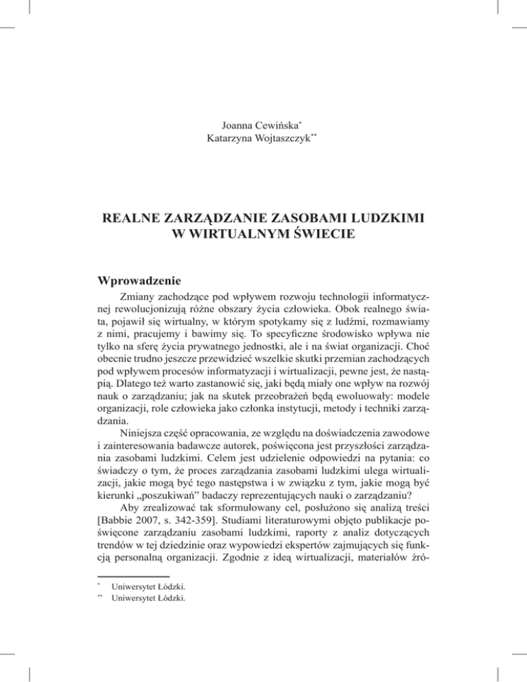 Realne zarządzanie zasobami ludzkimi w wirtualnym świecie.