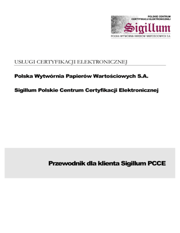 USŁUGI CERTYFIKACJI ELEKTRONICZNEJ Polska Wytwórnia Papierów Wartościowych S.A. Sigillum Polskie Centrum Certyfikacji Elektronicznej Przewodnik dla klienta Sigillum PCCE 1. Korzystanie z usług Sigillum PCCE Założenia Zadaniem niniejszego przewodnika jest zapoznanie klientów ubiegających się o certyfikaty Sigillum Polskiego Centrum Certyfikacji Elektronicznej z wymaganymi dokumentami oraz możliwymi ścieżkami prowadzącymi do podpisania umowy. W celu zakupienia usług certyfikacyjnych oferowanych przez Sigillum PCCE zawsze konieczny jest osobisty kontakt przyszłego właściciela certyfikatu z Inspektorem ds. Rejestracji. W związku z tym zapraszamy do jednego z naszych Punktów Rejestracji lub Punktów Weryfikacji Tożsamości znajdujących się w różnych miejscach kraju. Szczegółowe przedstawienie lokalizacji wszystkich Punktów Rejestracji Sigillum PCCE znajduje się na końcu niniejszego przewodnika oraz na stronie internetowej www.sigillum.pl. Istnieje możliwość wizyty naszych Inspektorów w celu sfinalizowania zakupu w miejscu dogodnym dla Zamawiającego. Wiąże się to jednak z koniecznością wniesienia dodatkowej opłaty za dojazd i weryfikację tożsamości na miejscu w siedzibie klienta. Co należy wiedzieć przed wizytą w Punkcie Rejestracji Sigillum PCCE ma w swojej ofercie kilka rodzajów certyfikatów, w związku z czym przed dokonaniem wyboru, warto jest poznać wstępną ofertę przedstawioną na stronie internetowej www.sigillum.pl. Ważne informacje na temat naszych produktów zawarte są też w dziale „Polityki i Regulaminy certyfikacji” znajdującym się na wspomnianej stronie internetowej w zakładce Repozytorium. Dzięki tym dokumentom potencjalny klient ma szansę uzyskać kompletną wiedzę na temat samych certyfikatów oraz usług oferowanych przez Sigillum PCCE. Wcześniejsze podjęcie decyzji w kwestii wyboru rodzaju certyfikatu jest szczególnie istotne w przypadku klienta indywidualnego (Subskrybenta), ponieważ potwierdzenie zapłaty musi zostać przedstawione w Punkcie Rejestracji nie później, niż w momencie zawarcia Umowy. Klient zbiorowy zwany „Zamawiającym” uiszcza opłatę po wydaniu certyfikatów i wystawieniu faktury. Certyfikaty Sigillum PCCE Sigillum PCCE ma w swojej ofercie zarówno kwalifikowane certyfikaty zgodne z Ustawą o podpisie elektronicznym służące tylko i wyłącznie do składania oświadczeń woli użytkownika, jak też certyfikaty komercyjne stosowane m.in. do podpisywania i/lub szyfrowania poczty elektronicznej, adresowane do różnych grup nabywców w zależności od oferowanych gwarancji finansowych i przeznaczenia certyfikatów. Sigillum PCCE str.1 2. Dokumenty wymagane przez Sigillum PCCE 1. Klient indywidualny (Subskrybent) a) wypełniony formularz zgłoszenia certyfikacyjnego przesyłany do Punktu Rejestracji pocztą elektroniczną. Wzór jest zamieszczony na stronie internetowej: www.sigillum.pl. Alternatywną metodą jest wprowadzenie odpowiednich danych bezpośrednio na stronie internetowej http://epr.sigillum.pl/Login.aspx. Taka procedura kontaktu pozwala na wcześniejsze przygotowanie umowy i skrócenie czasu potrzebnego na wizytę w Punkcie Rejestracji. b) podstawowe dokumenty tożsamości: • dowód osobisty; • paszport (jeżeli występuje jako dokument podstawowy, niezbędne jest przedstawienie oryginalnych dokumentów potwierdzających posiadany numeru PESEL odpowiednio dla certyfikatów kwalifikowanych i/lub komercyjnych). c) dodatkowe dokumenty tożsamości • prawo jazdy; • paszport; • w przypadku obcokrajowców – Karta Stałego Pobytu, oryginalne dokumenty potwierdzające posiadany numer NIP i PESEL; d) tajne hasło niezbędne w przypadku konieczności zawieszenia lub unieważnienia certyfikatu, złożone z min. 8 znaków w tym: duża litera, mała litera, cyfra, znak specjalny (np. !, @, #, *, &, +). Może być dostarczone do Punktu Rejestracji wcześniej w zaklejone i podpisanej kopercie lub przygotowane na miejscu w Punkcie Rejestracji. UWAGA: W przypadku certyfikatów komercyjnych w zależności od rodzaju wymagane są jeden lub dwa dokumenty tożsamości Sigillum PCCE str.2 2. Klient zbiorowy (Zamawiający) a) Wypełniony formularz zgłoszeniowy przesyłany do Punktu Rejestracji pocztą elektroniczną. Alternatywną drogą jest wprowadzenie danych bezpośrednio na stronie internetowej http://epr.sigillum.pl/Login.aspx Wzór jest zamieszczony na stronie internetowej: www.sigillum.pl. b) Dokumenty wymagane podczas weryfikacji Zamawiającego przy nabywaniu usług certyfikacyjnych Sigillum PCCE CHARAKTER ZAMAWIAJĄCEGO 1. Indywidualna działalność gospodarcza, a także notariusze, radcy prawni, adwokaci prowadzący indywidualne kancelarie, lekarze, stomatolodzy, farmaceuci DOKUMENTY JEDNOZNACZNIE OKREŚLAJĄCE ZAMAWIAJĄCEGO • • dokumenty tożsamości osoby upoważnionej do zawarcia umowy zgodne z aktualnymi Politykami i Regulaminami certyfikacji Sigillum PCCE; odpis z Krajowego Rejestru Sądowego lub (zaświadczenie o wpisie do ewidencji działalności gospodarczej) z datą nie wcześniejszą niż 6 miesięcy przed datą podpisania umowy, z następującymi wyjątkami: notariusz - akt nominacji i wyznaczenia siedziby przez Ministra Sprawiedliwości; radca prawny - wypis z listy radców prawnych wydany przez Okręgową Izbę Radców Prawnych; adwokat Adwokackiej adwokackiej: zaświadczenie z Okręgowej Rady o prowadzeniu działalności w kancelarii lekarze, stomatolodzy, farmaceuci – zezwolenie na wykonywanie praktyk lekarskich lub zaświadczenie o wpisie do rejestru praktyk lekarskich • • 2. Spółka cywilna • • Sigillum PCCE oryginał zaświadczenia o nadaniu numeru NIP i Regon pełnomocnictwo szczególne jeżeli umowę zawiera pełnomocnik. dokumenty tożsamości osoby upoważnionej do zawarcia umowy zgodne z aktualnymi Politykami i Regulaminami certyfikacji Sigillum PCCE; zaświadczenie o wpisie do ewidencji działalności gospodarczej z datą nie wcz
