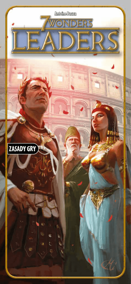 Antoine Bauza Zasady gry « Jedną z kar za odmowę uczestniczenia w polityce, jest pozostawanie pod rządami gorszych od siebie. » (Platon). Zawartość - 1 plansza Cudu Świata - 1 karta Cudu Świata - 36 kart Liderów - 4 karty gildii - 17 monet o wartości 6 - 1 żeton Kurtyzany - 1 notes punktacji - 1 instrukcja - 1 pusta karta Lidera Opis Rozszerzenie Liderzy do gry 7 Cudów Świata daje możliwość wybrania liderów dla Twojej cywilizacji. Przedstawione na 36 nowych kartach historyczne postaci wpłyną na rozwój miast, każda na swój wyjątkowy sposób. Rozgrywka nieco się zmienia, ale warunki zwycięstwa pozostają takie same, jak w podstawowej wersji 7 Cudów Świata. -2- Zawartość Plansza Cudu Świata Rzym i jego Koloseum tworzą nową planszę Cudu Świata, którego cechy znajdują się na końcu tej instrukcji. Nowa plansza może być użyta tylko z dodatkiem Liderzy. Karty Liderów Liderzy (białe karty) to nowa kategoria kart. Nie należy ich dodawać do kart Ery, lecz tworzą osobną talię. Można je łatwo odróżnić po innym wzorze rewersu. Ich koszt, wyrażony tylko w monetach, znajduje się w górnym, lewym rogu. Pusta karta Lidera (Semiramis) Pusta karta Lidera pozwoli Ci stworzyć własną postać, którą będzie można dołączyć do gry. Karty Gildii 4 nowe Gildie (karty fioletowe), które można dodać do pozostałych, z podstawowej wersji gry, jednak trzeba uważać, gdyż niektóre z nich mogą być użyte tylko z dodatkiem Liderzy. Monety 17 monet o wartości 6 należy dodać do tych z podstawowej wersji gry. Żeton - Kurtyzana Specjalny żeton do użytku z jedną z nowych Gildii. Notes punktacji Nowy notes punktacji pozwoli notować punkty zwycięstwa, także te, które zostały zdobyte dzięki Liderom. Przygotowanie do gry - Nowe Gildie (karty fioletowe) dla III Ery należy dodać do pozostałych, z podstawowej wersji gry. Zasady tworzenia talii III Ery pozostają niezmienione (liczba Gildii w talii pozostaje taka sama). - Każdy gracz zaczyna z 6 monetami (zamiast 3 jak w podstawowym wariancie gry). -3- Przebieg Rozgrywki Teraz gra rozpoczyna się Fazą Liderów. Dodatkowo na początku każdej Ery ma miejsce faza Rekrutacji. Faza Liderów Każdy z graczy dostaje po 4 losowych Liderów z talii (trzyma ich w ukryciu). Nie rozdane karty należy odłożyć do pudełka. 1. Każdy z graczy wybiera jednego z 4 Liderów i nie pokazując innym graczom kładzie go zakrytego przed sobą. Trzy pozostałe karty należy przekazać graczowi po swojej prawej. 2. Każdy z graczy wybiera jednego z 3 Liderów, których otrzymał od gracza po lewej i nie pokazując innym graczom kładzie go zakrytego przed sobą. Dwie pozostałe karty należy przekazać graczowi po swojej prawej. 3. Każdy graczy wybiera jednego z 2 Liderów, których otrzymał od gracza po lewej i nie pokazując innym graczom kładzie go zakrytego przed sobą. Pozostałą kartę należy przekazać graczowi po swojej prawej. 4. Każdy z graczy odbiera kartę od gracza po lewej i dodaje ją do trzech, które wybrał przez tę fazę. Na koniec fazy każdy gracz ma 4 Liderów, których sobie wybrał. Można zacząć rozgrywkę I Ery. Przebieg jednej Ery Każda Era zaczyna się fazą Rekrutacji. PRZEBIEG JEDNEJ ERY 1. Rekrutacja 2. Rozegranie Ery 3. Rozstrzygnięcie Konfliktów Rekrutacja W tej fazie każdy z graczy zagrywa jednego ze swoich Liderów. Każdy gracz wybiera swoją kartę, a następnie wszyscy ujawniają swoje karty jednocześnie. Kartę Lidera można zagrać na 3 sposoby: a. Wystawienie Lidera b. Wybudowanie etapu Cudu Świata c. Odrzucenie karty by uzyskać 3 monety. a. Wystaw Lidera Gracz płaci koszt Lidera w monetach (monety trafiają do banku) i umieszcza odkrytą kartę Lidera obok swojej planszy Cudu Świata. Graj fair! Aby pomóc innym graczom odczytywanie Twojej planszy zalecamy, aby Hannibala i Cezara umieścić w tym samym miejscu, co c zerwone karty, aby wszystkie Twoje Tarcze były widoczne w jednym miejscu. Analogicznie Euklidesa, Ptolemeusza i Pitagorasa najlepiej umieścić przy zielonych kartach o odpowiadającym symbolu.. b. Ukończ etap budowy Cudu Świata Aby ukończyć etap budowy Cudu Świata gracz używa wybranej karty Lidera jako znacznika budowy (koszulką do góry). Aby to zrobić trzeba zapłacić koszt budowy oznaczony na planszy Cudu, a nie na karcie Lidera. Uwaga: rzadko kiedy ta akcja będzie do wykorzystania w pierwszej Rekrutacji, gdyż miasta nie będą wytwarzać wystarczająco dużo surowców aby ukończyć pierwszy etap budowy Cudu Świata. -4- c. Odrzuć kartę by zyskać 3 monety Gracz może zdecydować, że odrzuca kartę Lidera i bierze 3 monety z banku, dodając je do skarbca swojego miasta. Odrzucona w ten sposób karta trafia z powrotem do pudełka bez ujawniania jej. Pozostałe karty Liderów będą mogły być użyte w dalszym etapie gry. Należy je położyć, zakryte, pod wystawionym Liderem. Na koniec tej fazy należy rozegrać Erę według normalnych reguł z wersji podstawowej 7 Cudów Świata. Uwaga!!! Podczas Rekrutacji przed rozegraniem III Ery każdy gracz dysponuje 2 kartami Liderów. Jedną z nich zagrywa w wybrany ze sposobów ukazanych powyżej (a, b lub c), zaś druga trafia z powrotem do pudełka bez ujawniania jej. Koniec Gry Tak jak w podstawowej wersji 7 Cudów Świata gra kończy się na koniec III Ery, po rozdaniu żetonów Konfliktu. Każdy gracz podlicza punkty swojej cywilizacji i ten, który ma ich największą liczbę, wygrywa. Wariant zaawansowany dla dwóch graczy. Wariant dla 2 graczy nieco modyfikuje zasady zawarte w podstawowej wersji 7 Cudów Świata. Rekrutacja zachodzi tak, jak w grze wieloosobowej, lecz faza Liderów jest nieco modyfikowana. Każdy gracz dostaje 4 zakryte, losowe karty Liderów. Wolnemu miastu nie przysługują żadne karty Liderów. Gracze wybierają pierwszego lidera z 4, których wylosowali i oddają 3 pozostałe karty przeciwnikowi. Wybierają drugą kartę z 3, które otrzymali od drugiego 