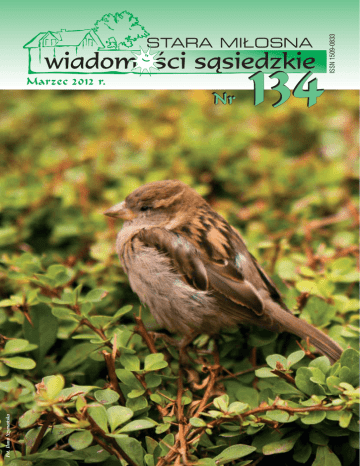 Fot. Ilona Szymaƒska Marzec 2012 r. Nr 134 ISSN 1509-0833 STARA MI¸OSNA Czytaj „WiadomoÊci Sàsiedzkie” w internecie: www.wiadomoscisasiedzkie.pl WARTO U NAS BYWAå ... baseny z atrakcjami 70 metrowa zje˝dzalnia sauny: fiƒska, turecka, infrared solarium fitness si∏ownia masa˝e, w tym goràcymi kamieniami bar tlenowy sklep sportowy kort tenisowy ca∏oroczny ogrzewany na sztucznej nawierzchni restauracja - pizzeria „Napoli” www.wesolandia.pl Warszawa - Wesoła, ul. Wspólna 4, tel./fax 22 773 91 91 Czytaj „WiadomoÊci Sàsiedzkie” w internecie: www.wiadomoscisasiedzkie.pl i nie odpowiadali za funkcjonowanie pogotowia wodociàgowego, stali si´ mimowolnymi adresatami mocno krytycznych uwag o funkcjonowaniu tego dzia∏u swojej firmy. Co prawda w sprawie planowanych na naszym terenie inwestycji, których zakres bardzo si´ zwi´ksza, a realizacja przebiega harmonijnie, dyskusja by∏a spokojna i rzeczowa, ale zosta∏o poruszonych sporo drobnych problemów, których cz´Êç obecni na sesji mieszkaƒcy w trakcie przerwy mogli szczegó∏owo omówiç i uzyskaç precyzyjne i ˝yczliwe uwagi jak sprawnie je rozwiàzaç. Przypominam, ˝e szczegó∏owy wykaz planowanych na ten rok inwestycji MPWiK by∏ opublikowany w poprzednim numerze WiadomoÊci Sàsiedzkich. Kolejnym punktem by∏o sprawozdanie z wykonania bud˝etu Dzielnicy w roku 2011 oraz wykonania ubieg∏orocznych inwestycji. Wi´cej na ten temat mo˝na przeczytaç na dalszych stronach „WS”. Nast´pnie Rada wys∏ucha∏a informacji o funkcjonowaniu i planach rozwoju weso∏owskiej s∏u˝by zdrowia. Tu najwi´kszym problemem jest ciasnota w przychodni w Starej Mi∏osnej. Jest to przedmiotem szczególnej troski w∏adz naszego SPZLO. Szcz´Êliwie pojawiajà si´ perspektywy pozyskania dodatkowych Êrodków, które umo˝liwi∏yby budow´ nowego, przestronnego budynku przychodni. W dalszej cz´Êci obrad zosta∏ przedstawiony szczegó∏owy harmonogram tegorocznych inwestycji. Ze wzgl´du na koniecznoÊç pewnych uszczegó∏owieƒ, pozwol´ sobie go zaprezentowaç Paƒstwu dopiero w nast´pnym numerze „WS”. Na koniec sesji Rada zapozna∏a si´ z informacjami o przebiegu akcji Zima w MieÊcie oraz o funkcjonowaniu instytucji i organizacji pozarzàdowych realizujàcych w Dzielnicy zadania z zakresu kultury i sportu. Koƒczàce sesj´ wolne wnioski i informacje zosta∏y zdominowane przez kwesti´ rozwa˝anych zmian w organizacji ˝ywienia dzieci w naszych szko∏ach. Poniewa˝ to bardzo szeroki temat, zainteresowanych Paƒstwa odsy∏am do odr´bnego tekstu na dalszych stronach „WS”. Kolejna sesja jest zaplanowana na dzieƒ 22 marca, jak zwykle o godz. 14.00 w Sali Rady Dzielnicy weso∏owskiego ratuza. Przewodniczàcy Rady Marcin J´drzejewski tów trasy WOW. WÊród bardzo wielu wytycznych dotyczàcych projektowania, znalaz∏ si´ równie˝ taki zapis: „Ze wzgl´du na utworzenie obszaru Natura 2000 «Strzebla b∏otna w Zielonce» oraz liczne protesty mieszkaƒców Weso∏ej – w tym osiedla Grzybowa nale˝y dokonaç szczegó∏owej analizy mo˝liwoÊci prowadzenia trasy w tych rejonach”. A dokonanie tej szczegó∏owej analizy opieraç si´ b´dzie na przeprowadzeniu szerokich konsultacji spo∏ecznych z: mieszkaƒcami, w∏adzami samorzàdowymi, organizacjami spo∏ecznymi, ekologicznymi oraz gospodarczymi. Mo˝emy wi´c oczekiwaç, ˝e jeszcze w tym roku takie konsultacje si´ odb´dà. Bardzo wiele miejsca w wymaganiach poÊwi´- cone jest inwentaryzacji przyrodniczej. Zdawa∏am sobie spraw´, ˝e taka inwentaryzacja jest szczegó∏owa, ale nie wiedzia∏am, ˝e a˝ tak. OkreÊlone sà dok∏adnie okresy dokonywania inwentaryzacji poszczególnych gatunków ssaków, p∏azów, gadów, ptaków. OczywiÊcie wykonujàcy opracowanie b´dzie si´ równie˝ posi∏kowa∏ materia∏ami dost´pnymi, wyjÊciowymi, opracowanymi do tej pory dla tej inwestycji. Ale niech to b´dà tylko materia∏y pomocnicze. Wszystkich zainteresowanych zach´cam do zapoznania si´ ze szczegó∏owymi wymaganiami przetargowymi na stronie www.gddkia.gov.pl/pl/792/ powyzej-progow-unijnych. Anna Ksi´˝opolska Z prac Rady Dzielnicy Lutowa sesja Rady Dzielnicy odby∏a si´ w czwartek 16 lutego. Rozpocz´∏a si´ od serii spotkaƒ: najpierw z przedstawicielem Biura Architektury i Planowania Przestrzennego, nast´pnie z przedstawicielami MPWiK. Pierwsze z tych spotkaƒ by∏o krótkie, bo – jak mogliÊmy si´ dowiedzieç – Biuro nie rozpatruje obecnie ani jednego wniosku owarunki zabudowy, ani o pozwolenie na budow´ na terenie naszej Dzielnicy, co nale˝y rozumieç, ˝e w najbli˝szym czasie nie nale˝y si´ spodziewaç powstawania kolejnych blokowisk lub hipermarketów. Pojawi∏a si´ tak˝e informacja, ˝e SKO uchyli∏o decyzj´ Marsza∏ka województwa dotyczàcà odmowy wy∏àczenia produkcji leÊnej prywatnych dzia∏ek budowlanych, le˝àcych na obrze˝ach osiedla Stara Mi∏osna i skierowa∏o t´ decyzj´ do ponownego rozpatrzenia, jako wydanà z istotnym naruszeniem interesu spo∏ecznego. Z jednej strony to dobra decyzja, z drugiej koniecznoÊç ponownego rozpatrzenia jej przez Marsza∏ka o kolejne d∏ugie miesiàce odsuwa termin uchwalenia planu zagospodarowania przestrzennego Stara Mi∏osna Po∏udnie. Spotkanie z przedstawicielami MPWiK przebieg∏o ju˝ w nieco bardziej burzliwej atmosferze. Choç obecni na sesji goÊcie byli z wydzia∏u inwestycji Co dalej z WOW? Wschodnia Obwodnica Warszawy. Dla jednych inwestycja niezwykle istotna, dla innych – szkodzàca mieszkaƒcom i Êrodowisku. Ma pewnie tyle samo zwolenników, co przeciwników. Ale fakt pozostaje faktem – dla nas, mieszkaƒców Weso∏ej, jej przebieg jest bardzo wa˝ny. Chcia∏am wi´c przybli˝yç Paƒstwu obecny stan prac zwiàzanych z jej projektowaniem i budowà. Jak wiemy, w listopadzie 2011 roku na wniosek GDDKiA wygaszona zosta∏a tzw. decyzja Êrodowiskowa. Oznacza∏o to, ˝e proces projektowania i uzyskania pozwolenia 