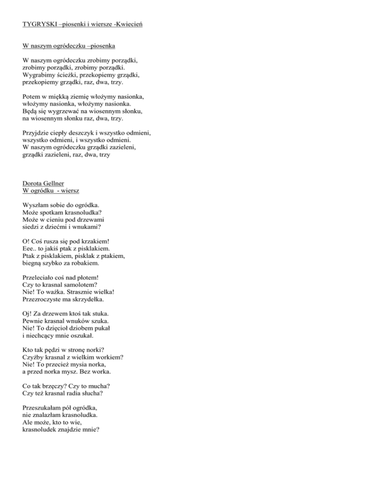 TYGRYSKI –piosenki i wiersze -Kwiecień W naszym ogródeczku