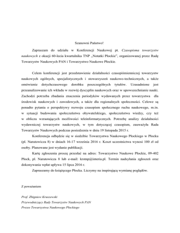 Pismo do uczestników - Towarzystwo Naukowe Płockie