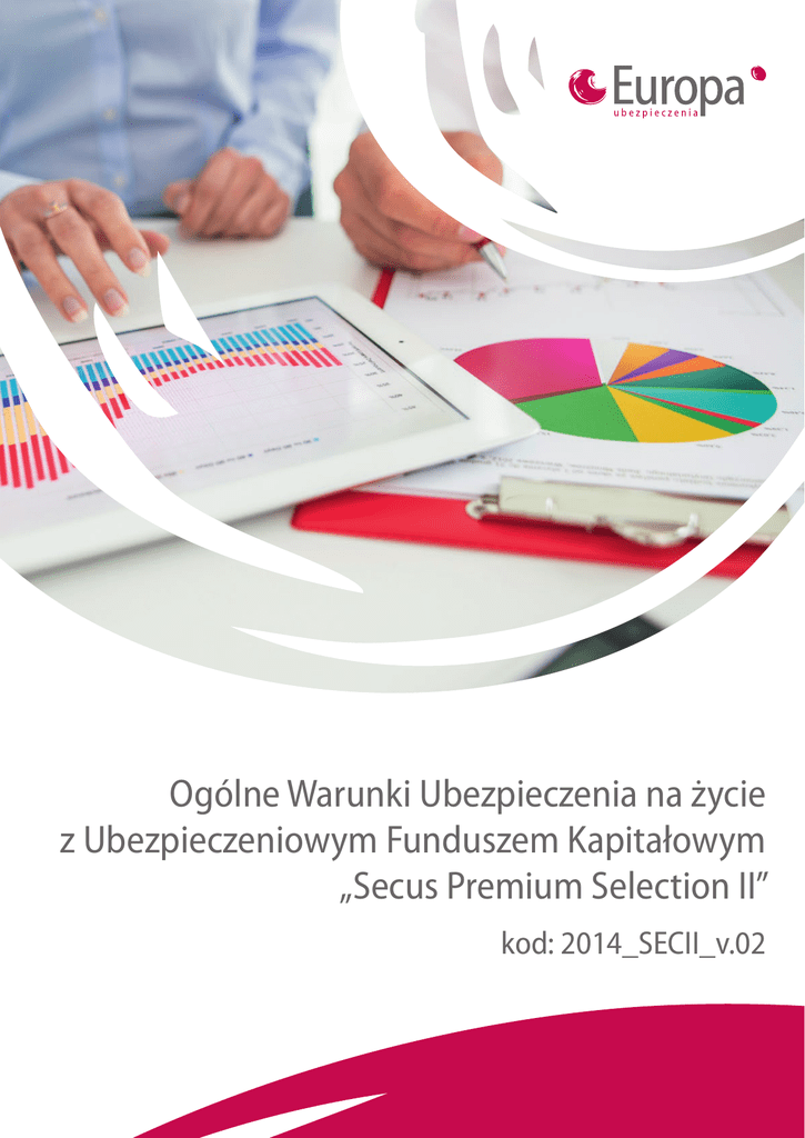 Ogólne Warunki Ubezpieczenia na życie z Ubezpieczeniowym Funduszem Kapitałowym „Secus Premium Selection II” kod: 2014_SECII_v.02 Prosimy o uważne zapoznanie się z Ogólnymi Warunkami Ubezpieczenia. Obramowane treści wewnątrz Ogólnych Warunków Ubezpieczenia mają na celu zwrócenie uwagi na istotne zagadnienia. W razie jakichkolwiek pytań lub wątpliwości co do treści przekazanych dokumentów, prosimy o zadanie pytań Przedstawicielowi Ubezpieczyciela lub też kontakt bezpośrednio z Biurem Obsługi Klienta Ubezpieczyciela pod numerem telefonu: 0 801 500 300 lub +48 (71) 36 92 887 (w tym dla połączeń z zagranicy), koszt połączenia zgodny z taryfą operatora. Infolinia dostępna jest od poniedziałku do piątku w godzinach od 7:00 do 22:00 oraz w soboty w godzinach od 8:00 do 18:00, z wyłączeniem dni ustawowo wolnych od pracy Pozostałe uregulowania dotyczące produktu znajdują się w: • Regulaminie Ubezpieczeniowych Funduszy Kapitałowych, • „Tabeli Opłat i Limitów”, • Wykazie Ubezpieczeniowych Funduszy Kapitałowych Prosimy o zapoznanie się z ich zapisami przed złożeniem Wniosku o zawarcie Umowy Ubezpieczenia! Ogólne Warunki Ubezpieczenia na życie z Ubezpieczeniowym Funduszem Kapitałowym „Secus Premium Selection II” zatwierdzone Uchwałą Zarządu Towarzystwa Ubezpieczeń na Życie Europa S.A. nr 04/04/14 z dnia 08.04.2014 r., zmienione Uchwałą Zarządu Towarzystwa Ubezpieczeń na Życie Europa S.A. nr 14/07/14 z dnia 29.07.2014 r. Niniejsze Ogólne Warunki Ubezpieczenia na życie z Ubezpieczeniowym Funduszem Kapitałowym „Secus Premium Selection II” (kod: 2014_SECII_v.02), zwane dalej OWU, stanowią podstawę do zawierania Umów Ubezpieczenia na życie z Ubezpieczeniowym Funduszem Kapitałowym „Secus Premium Selection II” pomiędzy Towarzystwem Ubezpieczeń na Życie Europa S.A., z siedzibą we Wrocławiu przy ul. Gwiaździstej 62 (zwanym dalej TU na Życie Europa S.A. lub Ubezpieczycielem), a Ubezpieczającym. Definicje §1 tym paragrafie znajdują się wyjaśnienia wszystkich pojęć zdefiniowanych w Ogólnych Warunkach Ubezpieczenia (OWU). Zdefiniowane >> Wpojęcia zapisujemy zawsze z wielkiej litery. W rozumieniu niniejszych OWU poniższe określenia mają następujące znaczenie: 1. AKTYWA UBEZPIECZENIOWEGO FUNDUSZU KAPITAŁOWEGO – Certyfikaty Inwestycyjne Funduszu Inwestycyjnego zgromadzone w ramach danego Ubezpieczeniowego Funduszu Kapitałowego; 2. CAŁKOWITY WYKUP – zamiana Jednostek Uczestnictwa UFK zapisanych na Rachunku na środki pieniężne, w związku z likwidacją Rachunku, o której mowa w §12; 3. CERTYFIKATY INWESTYCYJNE (zwane również: CERTYFIKATAMI) – certyfikaty inwestycyjne emitowane przez dany Fundusz Inwestycyjny, które nie są oferowane w drodze oferty publicznej ani dopuszczone do obrotu na rynku regulowanym, ani wprowadzone do alternatywnego systemu obrotu w rozumieniu Ustawy z dnia 27 maja 2004 r. o funduszach inwestycyjnych (Dz. U. Nr 146, poz. 1546 z 2004 r. z późniejszymi zmianami); 4. DATA NABYCIA – data, w której następuje zamiana środków pieniężnych na Jednostki Uczestnictwa UFK; ilekroć mowa o nabyciu Jednostek Uczestnictwa UFK, należy przez to rozumieć zamianę środków pieniężnych na Jednostki Uczestnictwa UFK; >> W tym dniu zamienimy wpłacone środki pieniężne na Jednostki Uczestnictwa Ubezpieczeniowego Funduszu Kapitałowego. 5. DATA UMORZENIA – data, w której następuje zamiana Jednostek Uczestnictwa UFK zapisanych na Rachunku na środki pieniężne: 1) w przypadku otrzymania przez Ubezpieczyciela lub Przedstawiciela Ubezpieczyciela oświadczenia o odstąpieniu od Umowy Ubezpieczenia lub oświadczenia o wypowiedzeniu Umowy Ubezpieczenia w danym miesiącu kalendarzowym, Data Umorzenia to Dzień Wyceny z tego miesiąca Towarzystwo Ubezpieczeń na Życie Europa S.A. ul. Gwiaździsta 62, 53-413 Wrocław Biuro Obsługi Klienta 801 500 300 • 71 36 92 887 od poniedziałku do piątku 7:00 - 22:00 oraz w sobotę 8:00 - 18:00 z wyłączeniem dni ustawowo wolnych od pracy * opłata wg stawek operatora Sąd Rejonowy dla Wrocławia-Fabrycznej we Wrocławiu, KRS 0000092396, NIP 895-17-65-137, Kapitał zakładowy zarejestrowany i opłacony 307 200 000 zł 1 kalendarzowego; zamiana Jednostek Uczestnictwa UFK zapisanych na Rachunku na środki pieniężne nastąpi według Wartości Jednostki Uczestnictwa UFK z tego dnia, z zastrzeżeniem ppkt 2), 2) w przypadku otrzymania przez Ubezpieczyciela lub Przedstawiciela Ubezpieczyciela oświadczenia o odstąpieniu od Umowy Ubezpieczenia lub oświadczenia o wypowiedzeniu Umowy Ubezpieczenia w danym miesiącu kalendarzowym w Dniu Wyceny z tego miesiąca po godzinie 13:00 lub po tym dniu, Data Umorzenia to Dzień Wyceny z kolejnego miesiąca kalendarzowego; zamiana Jednostek Uczestnictwa UFK zapisanych na Rachunku na środki pieniężne nastąpi według Wartości Jednostki Uczestnictwa UFK z tego dnia, 3) w przypadku otrzymania przez Ubezpieczyciela lub Przedstawiciela Ubezpieczyciela aktu zgonu Ubezpieczającego w przypadku zgłoszenia roszczenia o wypłatę świadczenia z tytułu zgonu Ubezpieczającego w danym miesiącu kalendarzowym, zamiana Jednostek Uczestnictwa UFK zapisanych na Rachunku na środki pieniężne nastąpi według Wartości Jednostki Uczestnictwa UFK z ostatniego Dnia Wyceny poprzedzającego otrzymanie aktu zgonu, z zastrzeżeniem ppkt 4), 4) w przypadku otrzymania przez Ubezpieczyciela lub Przedstawiciela Ubezpieczyciela aktu zgonu Ubezpieczającego w przypadku zgłoszenia roszczenia o wypłatę świadczenia z tytułu zgonu Ubezpieczającego w danym miesiącu kalendarzowym w Dniu Wyceny lub po tym dniu, zamiana Jednostek Uczestnictwa UFK zapisanych na Rachunku na środki pieniężne nastąpi według Wartości Jednostki Uczestnictwa UFK z Dnia Wyceny z tego miesiąca; ilekroć mowa o umorzeniu Jednostek Uczestnictwa UFK, należy przez to rozumieć zamianę Jednostek Uczestnictwa UFK zapisanych na Rachunku na środki 