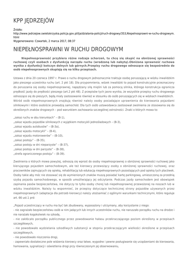 KPP JĘDRZEJÓW NIEPEŁNOSPRAWNI W RUCHU DROGOWYM
