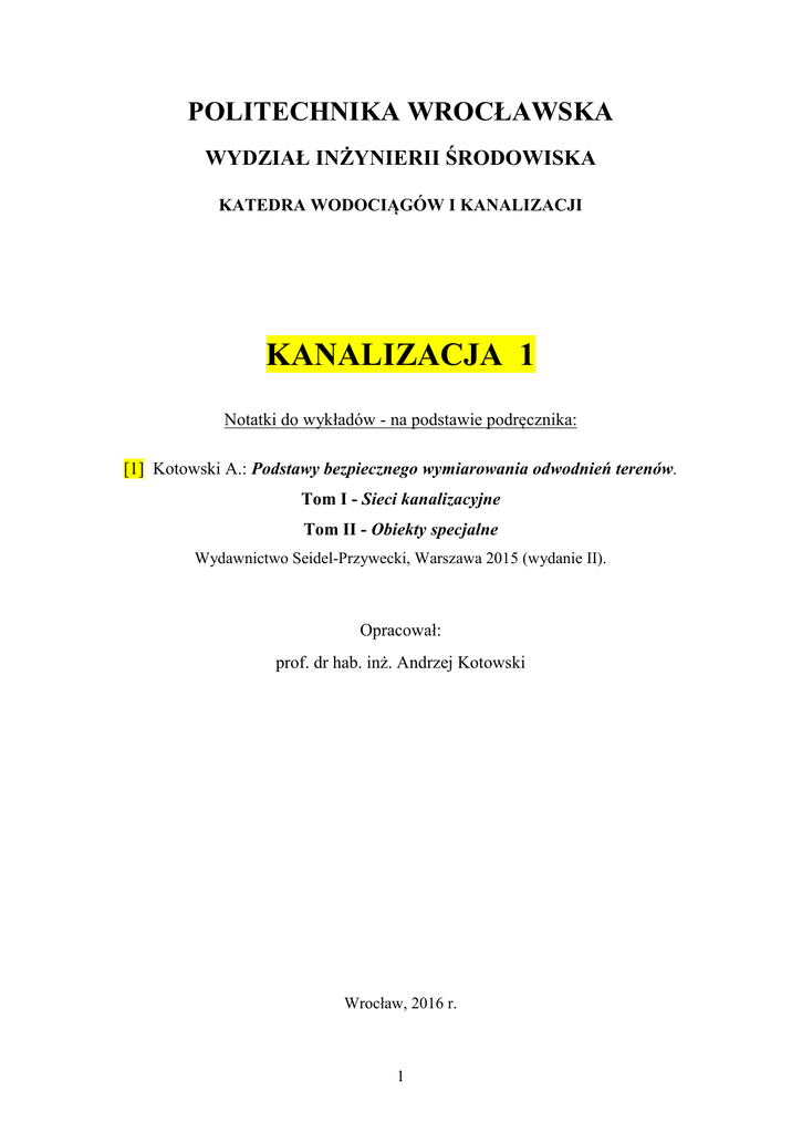 [1] Kotowski A.: Podstawy bezpiecznego wymiarowania odwodnień terenów.
