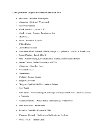 Lista sponsorów Dożynek Parafialno
