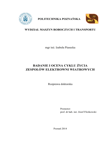2.4. Modelowanie cyklu istnienia zespołów elektrowni wiatrowych .................................. 41