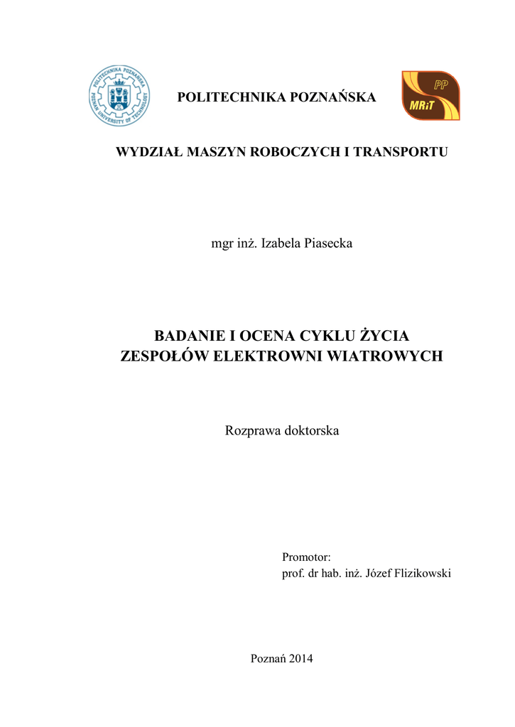 Rozprawa została poświęcona zagadnieniom badania i oceny cyklu życia w ujęciu