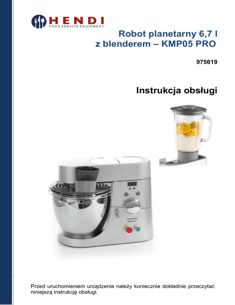 Robot planetarny 6,7 l z blenderem – KMP05 PRO Instrukcja obsługi