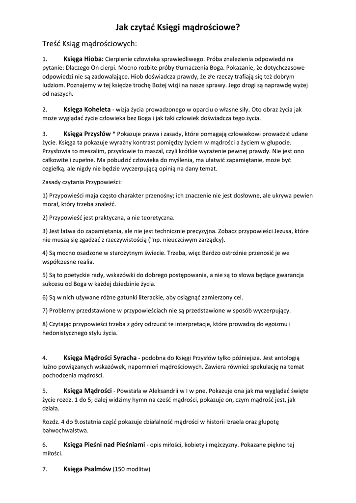 Księga Mądrości Syracha - podobna do Księgi Przysłów tylko późniejsza. Jest antologią