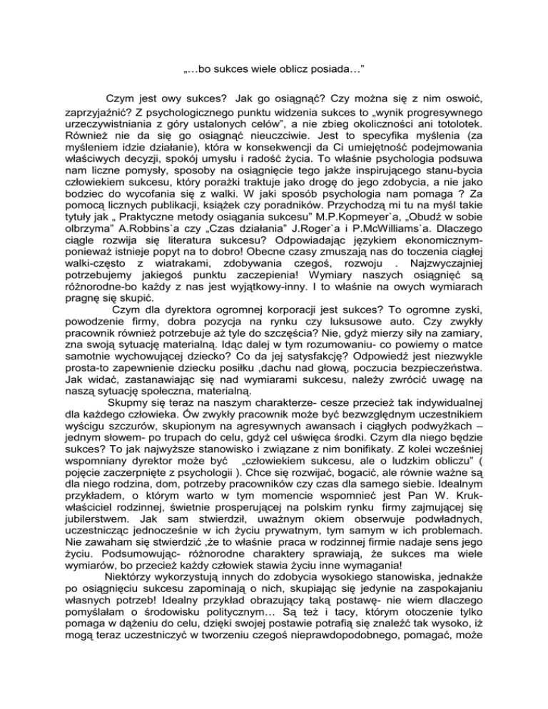 „…bo sukces wiele oblicz posiada…” Czym jest owy sukces? Jak go