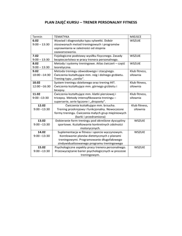PLAN ZAJĘĆ KURSU – TRENER PERSONALNY FITNESS