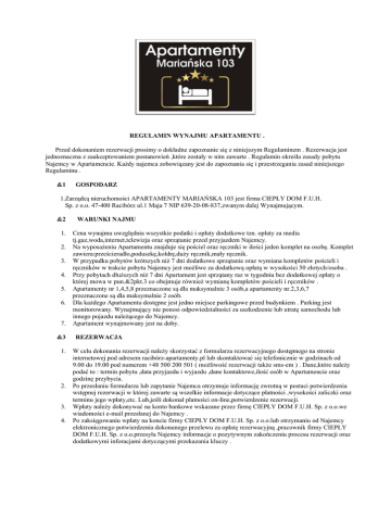 Regulamin - Apartamenty Mariańska 103