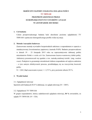 RAPORT Z BADANIA OGLĄDALNOŚCI TV TRWAM