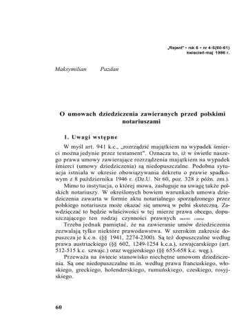 O umowach dziedziczenia zawieranych przed polskimi notariuszami