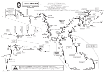 UWAGA ! Szkic złożony z kilku nie podpisanych szkiców. Część nazw korytarzy i sal za planem: R. M. Kardaś v. 2.5 oraz przekrojem: J. Grodzicki. Część szkicu z Batinoxami do Błotnych Zamków - T. Snopkiewicz 2007 Korytarz Trzech Króli - T. Kuchno 2007, WKTJ 2009 Wielkie Kominy, Ciasne Kominy - WKTJ 2009 Sala bez Stropu, Błotne Zamki - Marwoj - P. Stelmach 2010 Rura, Szczekociny, kaskady, Wielkie Kominy, wszystko za Marwojem - odległości M. Pindel 2011, K. Fidzińska, M. Firiendorf Jaskinia Miętusia Opracowanie: T. Snopkiewicz Kamienny Las P Plątanina korytarzyków. Korytarz pod Płytą - 66 m Korytarz Szturmgrupy Jeziorko Szmaragdowe (1) P P IV 20 (1,9) L 3 i 4 Aven L IV L IV Syfon MarWoj 10 P Próg Klasyczny II P P P P KORYTARZ TRZECH KRÓLI P P IV+ 13 (4,4) P L P L 25 (1,5,1,4,3,2) L L 16 Syfon Zielony But Prożek Beatki V L P P L “Rura” 16 S 40 P L Zawalisko Wantul 14 (3) Sala bez Stropu 11 (1) Syfon Zwolińskich Wiszący Syfonik 45 L Kaskady (2,3,8,6,8) S P P L Ślepy Komin 35 L L P P II Studnia Z 13 (1,2) L Ślizgawka 30 Sala Złotej Kaczki L L Korytarz Wygasłych Wulkanów Wielki Korytarz Wszawe Kominy Chińska Pagoda L IV Ćwiczebna studnia 21 (2, 7) Zacisk Kaczanosia 35 L WIELKIE KOMINY (1,7,16,12,21) CIASNE KOMINY L L Dupcyngier P Z L 3 Z L Wyżymaczka L S 8 +7 45 70 Pierwszy P P Aven Z L L L S (2,5,18,11,13) S III Studnia Ucho Igielne L S Szkice techniczne TYLKO dla osób posiadających Kartę Taternika Jaskiniowego ! Wchodzenie do jaskiń bez przeszkolenia i odpowiedniego sprzętu może doprowadzić do śmierci ! Wejście do jaskiń na terenie Parków Narodowych czy Krajobrazowych wymaga zezwolenia ! - 135 m - 213 m Syfon w Wielkich Kominach 1234 m npm Z S L L P P IV L 3 S L Komora pod Matką Boską Droga Przez Mękę Drugi Aven P Szczekociny L Prożek 12 III S - 128 m Błotne Zamki IV II+ P P P 18 II+ P V+ L 35 (1,3,3,2,1,1,2,2,2,2,2) P L Korytarz L IV+ 12 Południowy L II P L Próg 14 P L Męczenników V III 18 L P P P L P P VI - A1 P 10 (1) L 14 IV+ P P Piaskowy P P L Górny Komin 10 Wisząca Salka P L 54 L P V+ 0,0 m. P P V L III S 30 (2,2,2,4,3) III Kupa Żwiru L Korkociąg P Próg Odzyskanych Nadziei L L L Komin Wszystkich Św. P Trawers Mrucząca 17 Wanta P L Autostrada L L P 10 Trasa W - Z Zawał Częstochowiaków, Żelazne Wrota Sala z Dziurką L Zacisk Polskiej Kroniki Filmowej Górny Korytarz Krakowski Korytarz L P Ciągi Jubileuszowe Stumetrowy Korytarz 20 (2,6) Próg Jesteśmy w Domu :) P Marszałkowska http://www.kktj.pl Miedzianka, Korytarz Płetwonurka, Sala Lustrzana,Gilotyna, Studnia Pod Trawersem, Syfon Kaczanosia, ......... - 213 m Syfon w Ciasnych Kominach 40