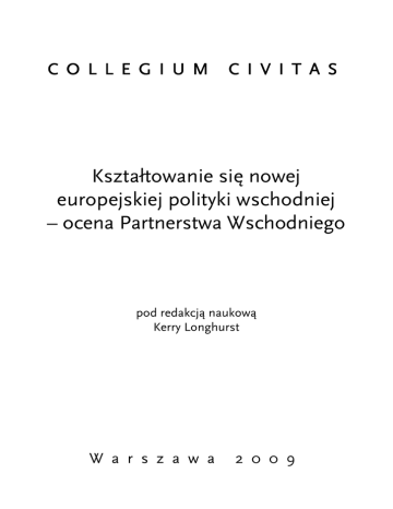 C O L L E G I U M C I V I T A S Kształtowanie się nowej europejskiej polityki wschodniej – ocena Partnerstwa Wschodniego pod redakcją naukową Kerry Longhurst W a r s z a w a 2 0 0 9 C O L L E G I U M C I V I T A S Projekt numer: FSS/2008/V/D4/W/0008 Koordynator projektu i asystent redaktora: Anna Zielińska Tłumaczenie: Michał Nawrot Redakcja i korekta: Magdalena Kopacz © Copyright by Collegium Civitas Press, Warszawa 2009 Przedruk materiałów Collegium Civitas Press w całości lub części możliwy jest tylko za zgodą Collegium Civitas. Cytowanie oraz wykorzystywanie danych empirycznych dozwolone jest z podaniem źródła. Na okładce wykorzystano zdjęcie Bridge, Image ID: 1281352, autorstwa JoshJack'a, zamieszczone na portalu SXC.hu, http://www.sxc.hu/photo/1281352. ISBN 978-83-61067-05-4 Wydawca: Collegium Civitas Press Pałac Kultury i Nauki, XII piętro 00-901 Warszawa, Plac Defilad 1 tel. 22 656 71 96 e-mail: [email protected] http://www.civitas.edu.pl Opracowanie typograficzne i skład: Marek Gawron – Collegium Civitas Projekt okładki: Studio Komar, http://www.komar.com.pl Druk i oprawa: Elpil 08-110 Siedlce, ul. Artyleryjska 11 tel. 25 643 65 51 e-mail: [email protected] Spis treści Kerry Longhurst Wstęp .................................................................................................................. 5 Kerry Longhurst Partnerstwo Wschodnie i co z niego wynika dla Europejskiej Polityki Sąsiedztwa ................................. 9 Anna Zielińska, Kerry Longhurst Partnerstwo Wschodnie – kontekst i reakcje niespokojnego regionu .................................................... 31 Joanna Popielawska Partnerstwo Wschodnie w kontekście innych europejskich inicjatyw regionalnych na wschodzie ......................................... 57 Pavel K. Baev Nieuniknione, lecz niepożądane czyli Rosja a Partnerstwo Wschodnie ............................................................. 73 Kerry Longhurst Wnioski czyli perspektywy dla Partnerstwa Wschodniego ............................. 89 Bibliografia ........................................................................................................... 97 Publikacje Collegium Civitas ............................................................................ 109 Kerry Longhurst Wstęp Czy Unia Europejska jest w trakcie wypracowywania nowej, europejskiej polityki wschodniej? To pytanie leży u podstaw niniejszego tomu Studiów i Analiz Collegium Civitas, w którym prezentujemy kontekst Partnerstwa Wschodniego (PW) i rozważamy szanse tej inicjatywy na odegranie przewodniej roli w procesie przewartościowania stosunków pomiędzy Brukselą a szóstką najbliższych sąsiadów na wschodzie. Publikacja stanowi efekt rocznej pracy, wykonanej w ramach projektu zrealizowanego przez Centre for Security Studies (CfSS) Collegium Civitas w latach 2008-2009, zatytułowanego „Europejska Polityka Sąsiedztwa – cel, założenia, perspektywy”. Został on zrealizowany przy wsparciu udzielonym przez Islandię, Liechtenstein i Norwegię, poprzez dofinansowanie ze środków Mechanizmu Finansowego Europejskiego Obszaru Gospodarczego oraz Norweskiego Mechanizmu Finansowego w ramach Funduszu Stypendialnego i Szkoleniowego. Głównym celem tego projektu było wyjście naprzeciw rosnącemu zapotrzebowaniu na nową wiedzę i badania dotyczące unijnych polityk sąsiedztwa, czego dokonaliśmy, zwracając szczególną uwagę na Partnerstwo Wschodnie. Żywimy przekonanie, że niniejsze opracowanie wraz z międzynarodowym seminarium na wysokim szczeblu, zatytułowanym „The European Neighbourhood Policy – assesment and outlook”, zorganizowanym przez CfSS 27 października 2009 roku w Warszawie, w znaczącym stopniu zaspokoi potrzebę nowych zasobów informacji i eksperckich analiz na ten temat. Równocześnie mamy nadzieję, że nasze działania w ramach CfSS wniosły ciekawy i ważny wkład w debaty toczące się w okresie poprzedzającym polską prezydencję w UE w 2011 roku, kiedy to Partnerstwo Wschodnie stanie się kwestią priorytetową. Celem PW jest wzmocnienie Europejskiej Polityki Sąsiedztwa (EPS), poprzez stworzenie nowej struktury regionalnej dla relacji z Ukrainą, Mołdawią, Białorusią, Gruzją, Azerbejdżanem i Armenią. Ktoś mógłby powiedzieć, że Partnerstwo Wschodnie jest odbiciem albo wręcz przeciwwagą dla Unii na rzecz Regionu Morza Śródziemnego, której dążeniem od momentu jej powołania w 2008 roku jest wzmocnienie relacji Unii Europejskiej (UE) z liczną grupą krajów na południowej flance Wspólnoty. Prawdę mówiąc, można by wyciągnąć wniosek, że PW po prostu daje sześciu sąsiadom na wschodzie szansę na 5 Kerry Longhurst to, co Unia ma już w ofercie dla sąsiadów z południa, na przykład w postaci układów stowarzyszeniowych i wolnego handlu. Chociaż niewykluczone, że tak jest, Partnerstwo Wschodnie – jak stara się to wyjaśnić opracowanie, które oddajemy do rąk czytelników – ma potencjał, by doprowadzić do głębokiej zmiany w relacjach UE z jej sąsiadami, pogłębiając współzależność i wykraczając znacznie poza stan rzeczy, z jakim mamy do czynienia na południu. Nacisk na bezpieczeństwo energetyczne i perspektywa daleko idącej liberalizacji wizowej, będące kluczowymi punktami programu PW, świadczą o rosnącym znaczeniu sąsiedztwa wschodniego. Co więcej, PW ma wyraźnie bardziej geopolityczny charakter – przynajmniej potencjalnie – ze względu na fakt, że UE zwiększa swoje zaangażowanie na obszarze, gdzie silne pozostają interesy innych ważnych graczy w regionie – Rosji, Turcji i Iranu. Wreszcie znaczenie PW wynika także z faktu, że inicjatywa ta jest wyrazem solidarności i uznania europejskich standardów przez jej członków (określanych mianem „europejskich partnerów”), czego wyraźnie brak w unijnych relacjach z południowymi sąsiadami (których nazywa się „partnerami Europy”). W związku z tym, te pa