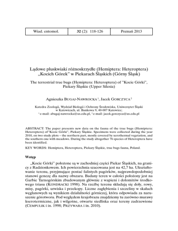 (Hemiptera: Heteroptera) „Kocich Górek” w Piekarach Śląskich