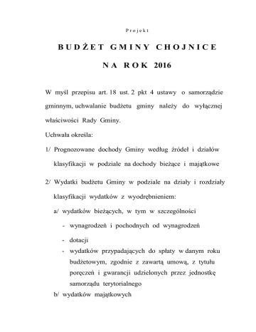 BUDŻET 2016 - projekt-komentarz - bip-gmina