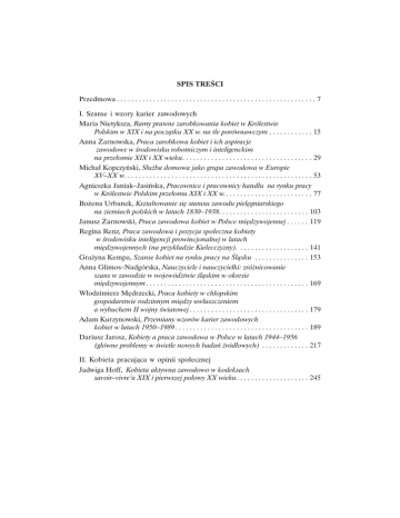 SPIS TREŒCI Spis treœci Przedmowa . . . . . . . . . . . . . . . . . . . . . . . . . . . . . . . . . . . . . . . . . . . . . . . . . . . . . . . 7 I. Szanse i wzory karier zawodowych Maria Nietyksza, Ramy prawne zarobkowania kobiet w Królestwie Polskim w XIX i na pocz¹tku XX w. na tle porównawczym . . . . . . . . . . . . 15 Anna ¯arnowska, Praca zarobkowa kobiet i ich aspiracje zawodowe w œrodowisku robotniczym i inteligenckim na prze³omie XIX i XX wieku. . . . . . . . . . . . . . . . . . . . . . . . . . . . . . . . . . . . 29 Micha³ Kopczyñski, S³u¿ba domowa jako grupa zawodowa w Europie XV–XX w. . . . . . . . . . . . . . . . . . . . . . . . . . . . . . . . . . . . . . . . . . . . . . . . . . . . 53 Agnieszka Janiak–Jasiñska, Pracownice i pracownicy handlu na rynku pracy w Królestwie Polskim prze³omu XIX i XX w.. . . . . . . . . . . . . . . . . . . . . . . . 77 Bo¿ena Urbanek, Kszta³towanie siê statusu zawodu pielêgniarskiego na ziemiach polskich w latach 1830–1938. . . . . . . . . . . . . . . . . . . . . . . . . 103 Janusz ¯arnowski, Praca zawodowa kobiet w Polsce miêdzywojennej . . . . . . 119 Regina Renz, Praca zawodowa i pozycja spo³eczna kobiety w œrodowisku inteligencji prowincjonalnej w latach miêdzywojennych (na przyk³adzie Kielecczyzny). . . . . . . . . . . . . . . . . . . . 141 Gra¿yna Kempa, Szanse kobiet na rynku pracy na Œl¹sku . . . . . . . . . . . . . . . 153 Anna Glimos–Nadgórska, Nauczyciele i nauczycielki: zró¿nicowanie szans w zawodzie w województwie œl¹skim w okresie miêdzywojennym. . . . . . . . . . . . . . . . . . . . . . . . . . . . . . . . . . . . . . . . . . . . . 169 W³odzimierz Mêdrzecki, Praca kobiety w ch³opskim gospodarstwie rodzinnym miêdzy uw³aszczeniem a wybuchem II wojny œwiatowej . . . . . . . . . . . . . . . . . . . . . . . . . . . . . . . . . 179 Adam Kurzynowski, Przemiany wzorów karier zawodowych kobiet w latach 1950–1989. . . . . . . . . . . . . . . . . . . . . . . . . . . . . . . . . . . . . 189 Dariusz Jarosz, Kobiety a praca zawodowa w Polsce w latach 1944–1956 (g³ówne problemy w œwietle nowych badañ Ÿród³owych) . . . . . . . . . . . . . 217 II. Kobieta pracuj¹ca w opinii spo³ecznej Jadwiga Hoff, Kobieta aktywna zawodowo w kodeksach savoir–vivre’u XIX i pierwszej po³owy XX wieku. . . . . . . . . . . . . . . . . . . . 245 4 Spis treœci Pavla Vošahlíková, Pozycja spo³eczna i presti¿ kobiety pracuj¹cej zawodowo w Czechach na prze³omie XIX i XX wieku . . . . . . . . . . . . . . . 255 Jadwiga Zacharska, Nauczycielka w literaturze prze³omu XIX i XX w. . . . . . 267 Katarzyna Sierakowska, Aspiracje zawodowe kobiety zamê¿nej w rodzinach inteligenckich lat miêdzywojennych w opinii prasy kobiecej i poradników dla kobiet . . . . . . . . . . . . . . . . . . . . . . . . . . . 291 Magdalena Gawin, G³osy krytyczne w sprawie zawodowej pracy kobiet 1918–1939 (w œwietle publicystyki) . . . . . . . . . . . . . . . . . . . . 303 Dobrochna Ka³wa, Model kobiety aktywnej zawodowo w Polsce miêdzywojennej . . . . . . . . . . . . . . . . . . . . . . . . . . . . . . . . . . . . . . 317 Anna Landau–Czajka, Kobiety a praca zawodowa w podrêcznikach szkolnych dla dzieci . . . . . . . . . . . . . . . . . . . . . . . . . . . . . . . . . . . . . . . . . . 337 Renata Ewa Hryciuk, Idealna pracownica? — czyli „stara panna” a praca zawodowa . . . . . . . . . . . . . . . . . . . . . . . . . . . . . . . 353 Anna Sieradzka, Przedstawienia kobiet pracuj¹cych w polskim malarstwie i grafice doby pozytywizmu. . . . . . . . . . . . . . . . . . . 365 Summary . . . . . . . . . . . . . . . . . . . . . . . . . . . . . . . . . . . . . . . . . . . . . . . . . . . . . . . 373 Indeks nazwisk . . . . . . . . . . . . . . . . . . . . . . . . . . . . . . . . . . . . . . . . . . . . . . . . . . 379 Indeks organizacji . . . . . . . . . . . . . . . . . . . . . . . . . . . . . . . . . . . . . . . . . . . . . . . 389 Informacje o Autorach . . . . . . . . . . . . . . . . . . . . . . . . . . . . . . . . . . . . . . . . . . . 395 TABLE OF CONTENTS Table of Contents Foreword. . . . . . . . . . . . . . . . . . . . . . . . . . . . . . . . . . . . . . . . . . . . . . . . . . . . . . . . . 7 I. The Opportunities and Models of Professional Careers Maria Nietyksza, The Legal Framework of Wage–earning Employment for Women in the Kingdom of Poland during the Nineteenth Century and at the Beginning of the Twentieth Century against a Comparative Background . . . . . . . . . . . . . . . . . . . . . . . . . . . . . . . . . . . . . . . . . . . . . . . . . 15 Anna ¯arnowska, The Wage–earning Jobs of Women and Their Professional Aspirations in the Working Class and Intelligentsia Environments at the Turn of the Nineteenth Century . . . . . . . . . . . . . . . . . . . . . . . . . . . . . . . . . . 29 Micha³ Kopczyñski, The Oldest Profession in the World. Domestic Servants in Europe from the Fifteenth to the Twentieth Century . . . . . . . . . . . . . . . . 53 Agnieszka Janiak–Jasiñska, Saleswomen and salesmen on the Labour Market in the Kingdom of Poland at the Beginning of the Twentieth century . . . . . 77 Bo¿ena Urbanek, The Shaping of the Status of the Nursing Profession in Polish Lands in 1830–1938 . . . . . . . . . . . . . . . . . . . . . . . . . . . . . . . . . . 103 Janusz ¯arnowski, Women’s Professional Work in Inter–war Poland. . . . . . . 119 Regina Renz, The Professional Work and Social Position of the Woman in the Provincial Intelligentsia during the Inter–war Period (upon the Example of the Kielce Region) . . . . . . . . . . . . . . . . . . . . . . . . . 141 Gra¿yna Kempa, Women’s Chances on the Labour Market in Silesia . . . . . . 153 Anna Glimos–Nadgórska, Male and Female Teachers: Differentiated Professional Chances in the Voivodeship of Silesia during the Inter–war Period . . . . . . . . . . . . . . . . . . . . . . . . . . . . . . . . . . . . . . . . . . . . . . . . . . . . . 169 W³odz