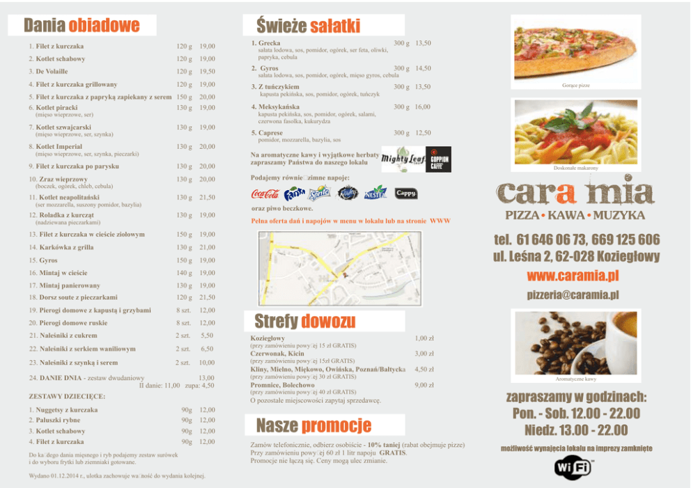 Świe e sałatki Dania obiadowe Strefy dowozu Nasze