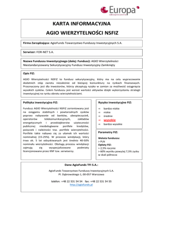 AGIO Wierzytelności NSFIZ - karta informacyjna