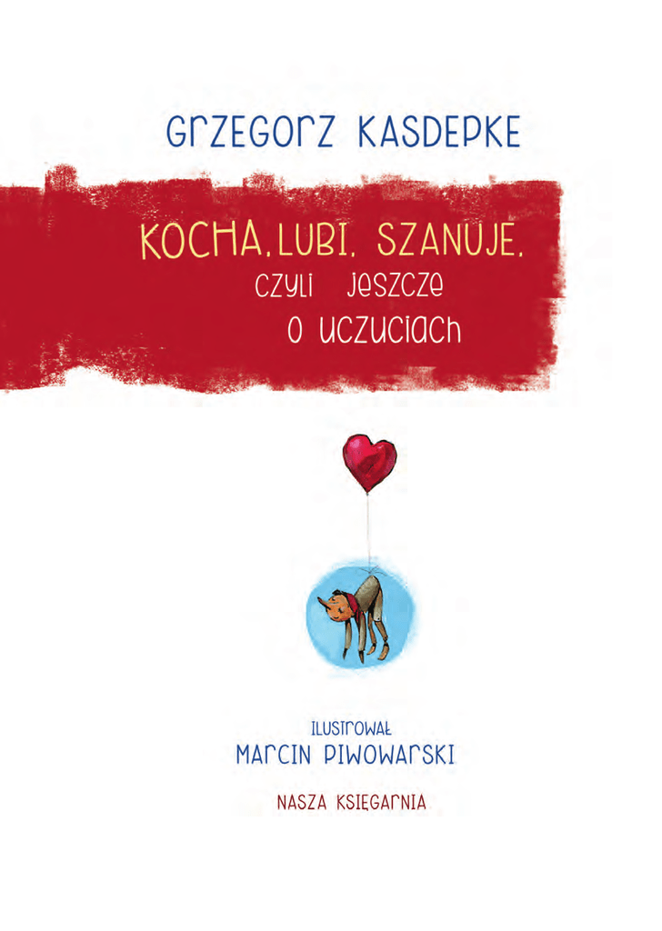 © Copyright by Wydawnictwo „Nasza Księgarnia”, Warszawa 2009 Text © copyright by Grzegorz Kasdepke, 2009 Illustrations © copyright by Marcin Piwowarski, 2009 Projekt okładki Marta Weronika Żurawska-Zaręba Miłość Niby pani Miłka wyglądała tak samo jak zwykle, ale przedszkolaki wyczuwały w niej zmianę – tylko jaką?! – Wiem! – szepnęła schowana za krzakiem Rozalka. – Nie poprawia sobie grzywki tak często jak przedtem! Grześ wyjrzał zza zjeżdżalni. Może i prawda. Ale to chyba nie o grzywkę chodziło. Pani Miłka ogólnie wydawała się jakaś taka… inna. – A może po prostu ząb ją boli? – wtrącił rezolutny Bodzio. – I myśli, gdzie by tu pójść do dentysty? Rozalka spojrzała na niego z politowaniem. – No co?! – zirytował się Bodzio. – Kiedy ostatnio byłeś u dentysty? – Wczoraj! – I co, uśmiechałeś się przedtem? Chłopiec umilkł. Wprawdzie jego pani dentystka jest bardzo miła, ale Bodziowi nie zdarzyło się jeszcze myśleć o wizycie u niej z uśmiechem. – Nie pamiętam – mruknął dyplomatycznie. – To ja ci mówię, że nie – zasapała Rozalka. – A pani Miłka uśmiecha się co chwila, jakby ktoś łaskotał ją w pięty. Na potwierdzenie tych słów pani Miłka uśmiechnęła się szeroko, a potem powędrowała wzrokiem za ogrodzenie przedszkola. Rozalka, Grześ i Bodzio odruchowo zerknęli na jej nogi. Nie, nikt pani Miłki w pięty nie łas kotał. – Może pajacyk coś wie? – odezwał się po chwili Bodzio. – W końcu zna ją dłużej niż my, prawda? Prawda, prawda. Pajacyk znał panią Miłkę z czasów, gdy nie była jeszcze panią, lecz po prostu Miłką – i gdy nie wiedziała, kim chce zostać: aktorką czy przedszkolanką. – Nie wiesz, co się dzisiaj dzieje z panią Mił… – zaczęła Rozalka, ale po chwili zamilk ła i wytrzeszczyła na pajacyka oczy. On także wyglądał inaczej niż zwykle. Siedział w piaskownicy i nie spuszczając wzroku z przyniesionej przez Zosię lalki, co i raz wzdychał. – Może to jakaś zaraźliwa choroba? – wybełkotał Grześ. – Rozalka, uciekaj! Rozalka poczuła, że jest jej słabo. Grześ się o nią troszczy – co za radość! Piaskownica, zjeżdżalnia, huśtawki, budynek przedszkola, wszystko to zawirowało wokół niej i Rozalka klapnęła nagle obok pajacyka. Na jej twarzy pojawił się rozanielony uśmiech – taki sam, jaki co parę sekund słała za ogrodzenie pani Miłka. – Trzeba zawiadomić panią dyrektor – powiedział drżącym głosem rezolutny Bodzio. Ale Grześ, nie zwa żając na niebezpieczeń stwo, skoczył do przodu, chwycił Rozalkę pod ra miona i wyciągnął ją z piaskownicy. Pani Miłka ocknęła się z zamyślenia i spojrzała na nich niewiele rozumiejącym wzrokiem. – Zwariowaliście? – wykrztusiła, wstając z ławki. – Ro zalka, co z tobą? – Nie wiem… – szepnęła uszczęśliwiona Rozalka. – Niech pani do nich nie podchodzi – ostrzegł Bodzio. – Dlaczego? – zdumiała się pani Miłka. – Już chyba i tak za późno… – jęknęła Rozalka, zwisając w ramionach spoconego Grzesia. – Na pożegnanie cię pocałuję, mój bohaterze. Grześ puścił Rozalkę i odskoczył w bok jak oparzony. – No wiesz! – obruszył się. – Ja cię ratuję, a ty mnie chcesz całować?! – Nie wstydź się – stęknęła Rozalka, leżąc przy zjeżdżalni. – Powiedz, że mnie kochasz! Grzesia zatkało. Nie tylko jego zresztą – pa ni Miłka również wyglądała na oszołomioną. Podobnie jak i pani dyrektor, która wezwana przez Bodzia, nadchodziła właśnie od strony przedszkola. – Jak widzę, dzisiejsza lekcja jest o miłości – mruknęła, przystając obok pani Miłki. – To nie lekcja, to samo życie – poinformowała mądra Zosia. – Rozalka zakochała się w Grzesiu, pajacyk w mojej lalce, a pani Miłka w przedszkolnym ogrodzeniu. – Co?! – wykrztusili pajacyk, Rozalka i pani Miłka. Oczy wszystkich mimowolnie skierowały się w stronę ogrodzenia. Otaczające je krzewy wy raźnie zadrżały. – Co pan tam robi, kawalerze? – zapytała głośno pani dyrektor. – Ja? – Nad ogrodzeniem pojawiła się głowa jakiegoś mężczyzny. – Czekam. – A na kogo pan czeka? – kontynuowała przesłuchanie pani dyrektor. – Na Miłkę… – wyznał mężczyzna. 10 – To mój narzeczony – powiedziała zarumieniona pani Miłka. – Kuba. Dzieci spojrzały na siebie znacząco. – Pani Miłko, wolałabym, żeby zakochała się pani w ogrodzeniu – powiedziała pani dyrektor. – Miałabym pew ność, że nie odejdzie pani z pracy. – Nie mam takiego zamiaru! – pisnęła pani Miłka. Ale pani dyrektor jej nie usłyszała, bo wraz z dzieciakami pękała ze śmiechu. Miłość – uczucie, które potrafi dokonywać cudów. Jakich? A choćby takich: obcy pan spotyka obcą panią, a po jakimś czasie oboje nie mogą wyobrazić sobie życia bez siebie – no i stają się mamą i tatą. Dziwne, prawda? Bo miłość jest trochę jak superklej – łączy ze sobą ludzi. Tatę z mamą, mamę z córeczką, córeczkę z braciszkiem, braciszka z babcią – i tak dalej. Można kochać rodziców, dziadków, siebie samego, a nawet… chomika! Ludzie zakochani są szczęśliwi, radośni i mają ochotę cały świat zmieniać na lepsze. No, chyba że zakochali się nieszczęśliwie, bez wzajemności – na przykład jakiś pan kocha jakąś panią, a ona jego nie. Wtedy świat 11 wydaje się temu panu smutny i ponury. Ale miłość jest zaraźliwa i często pani zaczyna pana w końcu kochać. Gorzej, gdy to małemu dziecku zdaje się, że rodzice go nie kochają. Albo że kochają je mniej niż brata lub siostrę. Na szczęście okazuje się to przeważnie nieprawdą. Podsumowując więc – miłość jest uczuciem, w którym wszyscy powinni się zakochać. Świat będzie wtedy weselszy. Nigdy nie śmiej się z zakochanych – nie jesteś przecież niemądry jak maluch w pieluszce, prawda? Nie wst
