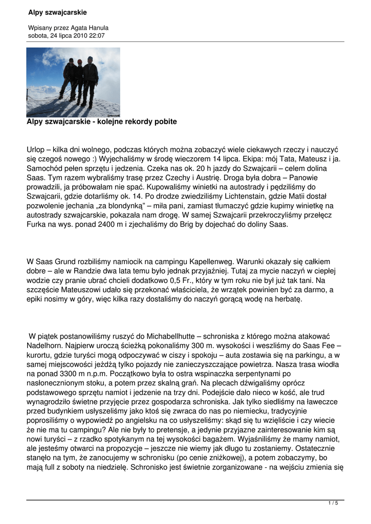 i możliwości wjazdu kolejką pod Weismiess. Wieczorem jeszcze pyszna pulpa, szwajcarskie