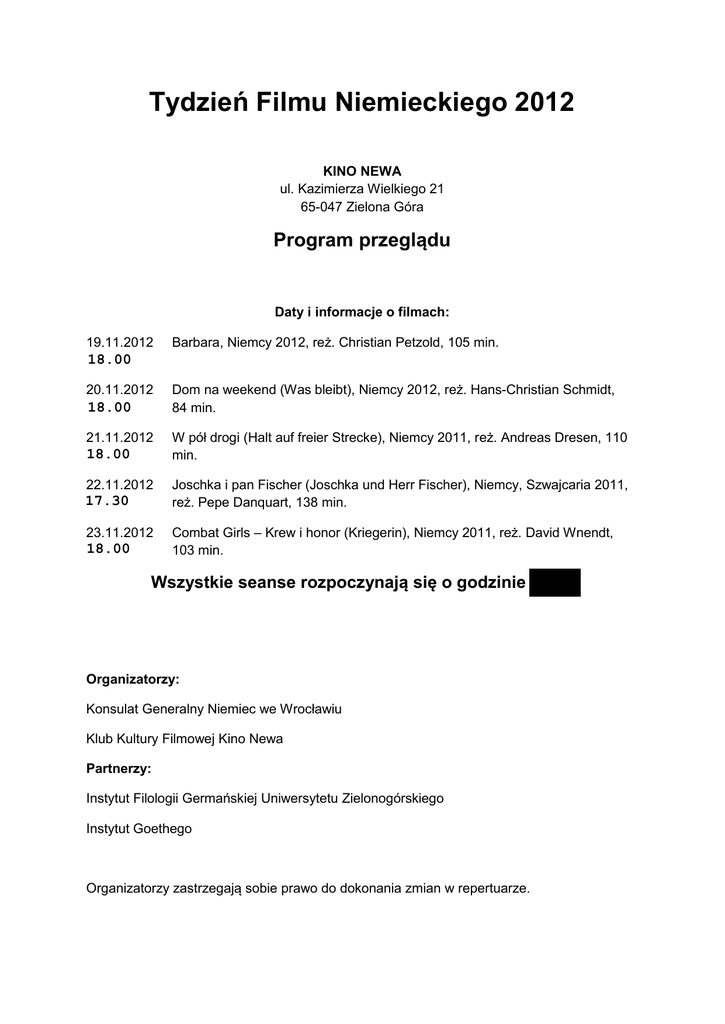 program tygodnia filmu niemieckiego