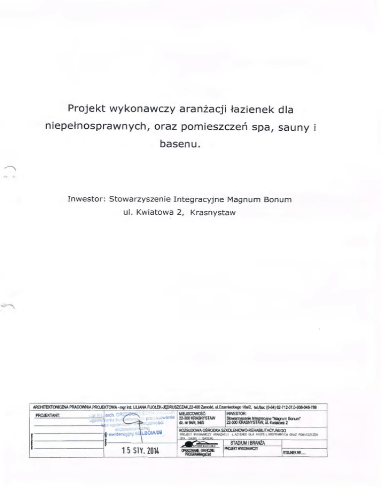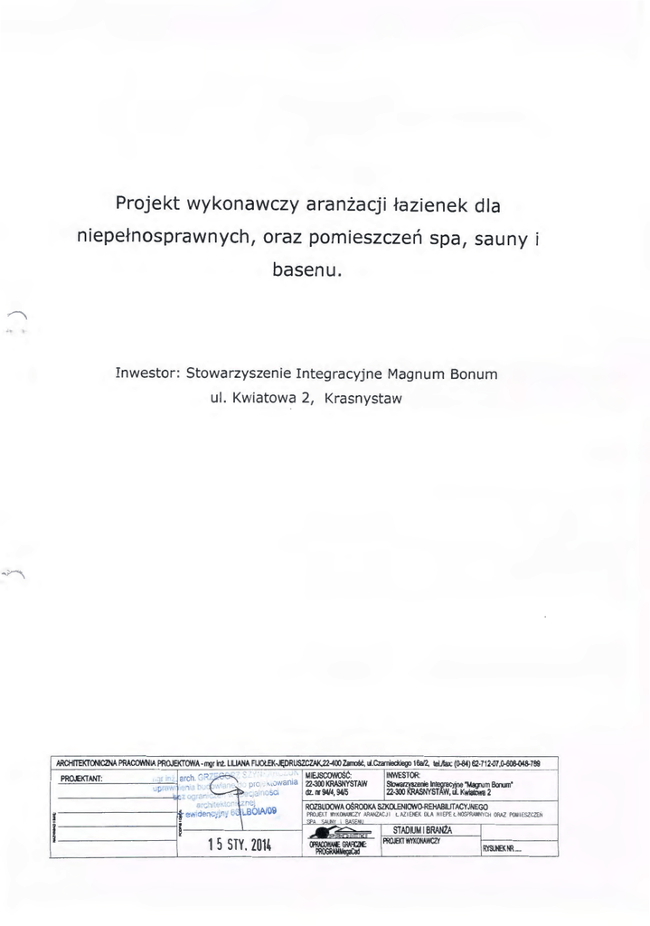 Inwestor: Stowa rzyszen ie Integracyjne Magnum Bonum