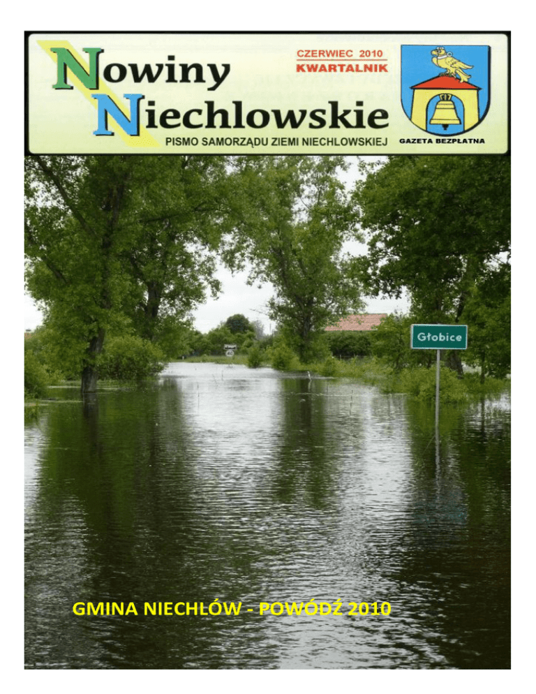 GMINA NIECHLÓW - POWÓDŹ 2010 2 Nowiny Niechlowskie PODZIĘKOWANIE „Nie trzeba być wielkim człowiekiem, by czynić wielkie rzeczy” W ostatnich dniach mieszkańcy Gminy Niechlów przeżywali ciężkie chwile. Sytuacja w jakiej się znaleźliśmy pokazała, iż w takich momentach jesteśmy wszyscy razem. Dzięki ogromnemu zaangażowaniu w sposób znaczący ograniczone zostały skutki żywiołu – powodzi. Uratowano przed zalaniem wiele domów i mieszkań. Choć często żywioł okazuje się silniejszy od działań człowieka, akcja powodziowa w naszej gminie, dzięki determinacji wielu osób, maksymalnie ograniczyła jej skutki. Jako Wójt Gminy Niechlów pragnę bardzo serdecznie podziękować wszystkim osobom za wielki trud i pracę w najgorszych dla naszej gminy chwilach. Słowa podziękowania kieruję przede wszystkim do mieszkańców naszej gminy z terenu objętego powodzią. Dziękuję sołtysom, radom sołeckim, dorosłym kobietom i mężczyznom, oraz młodzieży dziewczętom i chłopcom (trudno wymienić wszystkich, bo było Was tak wielu). To właśnie Wy, wspólnie ze strażakami, dzielnie walczyliście z powodzią. To była pełna mobilizacja społeczna i niesamowita, mrówcza praca. Nie zważaliście na to, że następnego dnia trzeba iść do pracy, czy też do szkoły. Zarówno w dzień jak i w nocy pracowaliście ciężko przy uszczelnianiu wałów i śluz, często używając swego prywatnego sprzętu. Nie trzeba było apelować do Was o pomoc w napełnianiu i układaniu worków z piaskiem. Sami się organizowaliście, nie zważając na zmęczenie. To właśnie dzięki Waszym dobrym sercom i wielkiej pomocy udało nam się maksymalnie ograniczyć skutki powodzi. Serdeczne podziękowania kieruję w stronę strażaków – wszystkich jednostek OSP z terenu naszej gminy. Po raz kolejny udowodniliście, że jesteście służbą w pełni profesjonalną i gotową do niesienia ochotniczej i spontanicznej pomocy w ekstremalnych warunkach, z narażeniem własnego zdrowia. Dziękuję Policji za zabezpieczenie ładu i porządku publicznego, że byliście z nami zarówno w dzień jak i w nocy. Dziękuję Firmom z terenu naszej gminy oraz wielu anonimowym osobom spoza terenu gminy, które ze szczerego serca udzielały się osobiście oraz dostarczały prywatnego sprzętu. Żywioł, który nawiedził naszą gminę, spowodował wiele strat, na szczęście tylko materialnych. Ale to dzięki Wam wszystkim – osobom pomagającym przy zabezpieczaniu zagrożonych miejsc i umacnianiu ich workami z piaskiem, Waszej pełnej poświęcenia i bardzo niebezpiecznej pracy, straty te nie były jeszcze większe. Jeszcze raz pragnę Wam gorąco podziękować za ogromny trud, poświęcenie i niezwykłe zaangażowanie. Wójt Gminy Niechlów Jan Głuszko 3 Nowiny Niechlowskie OBWIESZCZENIE WÓJTA GMINY NIECHLÓW Z DNIA 12 MAJA 2010R. ABSOLUTORIUM DLA WÓJTA GMINY Instytucja absolutoryjna jest związana z realizacją przez Radę Gminy funkcji kontrolnej w zakresie wykonania budżetu przez organ wykonawczy (Wójta, Burmistrza, Prezydenta Miasta). Przedmiotem oceny jest prawidłowość prowadzenia gospodarki finansowej w ramach przyjętego budżetu, a szczególnie stanu zrealizowanych wydatków i dochodów budżetowych w stosunku do wielkości zaplanowanych. Rada Gminy Niechlów, podczas Sesji dnia 22 kwietnia 2010r. jednogłośnie udzieliła Wójtowi Gminy Panu Janowi Głuszko absolutorium za rok 2009. Komisja Rewizyjna jak i Regionalna Izba Obrachunkowa nie stwierdziły przekroczeń w żadnym z działów. Nie stwierdzono również uchybień merytorycznych i formalnych, a budżet zarówno po stronie wydatkowej jak i dochodowej był wykonany przez Wójta w sposób właściwy. Bożena Kasperska Na podstawie art. 24 ust.1 ustawy z dnia 27 września 1990 r.-o wyborze Prezydenta Rzeczypospolitej Polskiej (Dz.U. z 2010r.,Nr 72, poz. 467), podaje się do wiadomości wyborców informację o numerach i granicach obwodów głosowania oraz wyznaczonych siedzibach obwodowych komisji wyborczych dla wyborów zarządzonych na dzień 20 czerwca 2010r. Nr obw głos Granice obwodu głosowania Siedziba obwodowej komisji wyborczej 1 Wronów, Wioska, Tarpno, Bogucin, Siciny, Łękanów Dom Strażaka, Siciny 2 Żuchlów, Niechlów, Klimontów, Bartodzieje, Świerczów Gminny Ośrodek Kultury, ul. Dworcowa 9, Niechlów *Lokal przystosowany do potrzeb wyborców niepełnosprawnych 3 Bełcz Wielki, Masełkowice, Miechów, Lipowiec, Głobice, Karów, Wągroda, Żabin, Szaszorowice Świetlica Wiejska, Szaszorowice Festyn Majowy Siciny 2010 Dnia 2 maja 2010 roku Wójt Gminy Niechlów zorganizował Festyn Majowy w Sicinach. Do współpracy aktywnie włączyły się Rada Sołecka Sicin, Koło Gospodyń Wiejskich w Sicinach, Ochotnicza Straż Pożarna w Sicinach oraz mieszkańcy wsi. W pierwszej części odbył się turniej piłkarski OSP, w którym brało udział osiem drużyn. Klasyfikacja końcowa przedstawia się następująco: 1. OSP Naratów 2. OSP Siciny 3. OSP Niechlów 4. OSP Miechów 5. OSP Bełcz Wielki 6. OSP Wronów 7. OSP Wroniniec 8. OSP Żuchlów W części rekreacyjno-sportowej Wójt Jan Głuszko przekazał na ręce Pani Czesławy Gierycz podziękowania z okazji 55-lecia istnienia Gminnej Biblioteki w Niechlowie oraz wręczył nagrody uczestnikom konkursu na „Exlibris Biblioteki Gminnej”. Podczas gier i zabaw towarzyszył nam zespół wokalny „Kantata” z Gminnego Ośrodka Kultury w Niechlowie pod kierownictwem Pana Stanisława Bety. 30 00 Od godziny 19 do 2 dnia następnego tańczyliśmy przy akompaniamencie zespołu „Dynamic”. Remigiusz Drzewiecki Dom Pomocy Społecznej, Wroniniec 59 *Lokal 4 Naratów, Wroniniec przystosowany do potrzeb wyborców niepełnosprawnych Głosowanie odbywać się będzie w lokalach obwodowych komisji wyborczych w dniu 20 czerwca 2010r. w godzinach od 6.00 do 20.00. WÓJT GMINY NIECHLÓW /-/ Jan Głuszko Zwrot podatku akcyzowego zawartego w cenie oleju napędowego wykorzystyw
