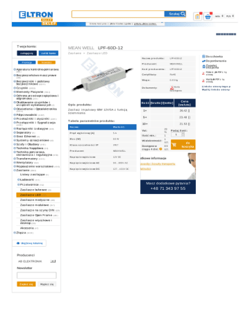 Sz ukaj S trona korz ysta z plikówCookiez godniez polityką plikówcookies. T wojekonto: z alogujs ię netto × MEANWELLLPF-60D-12 z ałóż konto Zasi l ani e > Zasi l acz eLED N a z wa p ro d u ktu : LPF-6 0D-12 P ro d u c en t: MEANWELL Apar atur akontr ol no-pom i ar owa K o d p ro d u c en ta : LPF-6 0D-12 Bez pi ecz eństwom asz ynowe C ertyfi ka ty: RoHS Bez pi ecz ni ki i podstawy bez pi ecz ni kowe(819 9 ) Cz uj ni ki (10315) El em entyPasywne(709 2) Ochr onapr z eci wpr z epi ęci owai odgr om owa(24 9 ) Okabl owani ecz uj ni kówi ur z ądz eńwykonawcz ych(7) Oświ etl eni ei Optoel ektr oni ka Wa g a : 0.4 5kg Promocje N owości (286 ) (14 9 4 ) Pół pr z ewodni ki (6 837) Pr z ekaź ni ki i stycz ni ki (134 6 ) Pr z eł ącz ni ki i Sygnal i z acj a (14 09 ) Roz ł ącz ni ki i z ol acyj ne(24 0) Separ ator y (9 ) Si eci Ether net (4 ) System yoz nacz eni owe(10) Sz afyi Obudowy (9 56 ) Techni kaNapędowa(6 8) Techni kapom i ar owa, ster owni cz ai r egul acyj na(9 50) Tr ansfor m ator y (9 6 9 ) Wentyl ator y (514 ) Wyposaż eni ewar sz tatowe(4 9 8) Zasi l ani e(284 2) Ilo ś ć [brutto ] /[netto ] Zasi l acz i m pul sowy60W12V/5Az funkcj ą ści em ni ani a T a bela pa ra m etró wpro duktu: N a z wa : Wa rto ś ć : P rą d wyj ś c i o wy[A] 5A M o c [W] 6 0W K l a s a s z c z el n o ś c i I P I P6 7 P ro d u c en t MEANWELL N a p i ęc i ewyj ś c i o we 12VDC N a p i ęc i ewej ś c i o weAC 9 0…305VAC N a p i ęc i ewej ś c i o weD C 127…4 31VDC Cena [wa luta ] 1+ 26.42[] 5+ 23.48 [] 10 + 21.53[] 23 Vat: Pod ajIlość: % + 1 Ilośćmin.: 1 1 Wielokrotność: sz t. do Dostępnew ciąg u 4d ni: 89 sz t. kosz yka Li stwyz asi l aj ące(6 ) Ładowar ki (6 9 ) Pr z etwor ni ce(712) Zasi l acz ebufor owe(15) Zasi l acz eLED (707) Zasi l acz em edycz ne(180) Zasi l acz em oduł owe(39 7) Zasi l acz enasz ynęDIN (125) Zasi l acz eOpenFr am e(186 ) Zasi l acz ewtycz kowei desktop(210) Akcesor i a(4 7) Zł ącz a(19 29 ) Ukryjlewąkolumnę Producenci ABELEKTRONIK Newsletter Wypis z s ię Za pyta j e ks pe rta L i n kd o s tro n yteg o p ro d u ktu Wyś l i j l i n kd o s tro n yteg o p ro d u ktu ka ta logowa O pis pro duktu: Doporówna nia Wyś lijplikPDFz tą s troną Ka rta D o ku m en ty: Dos chowka Pobie rz plikPDFz tą s troną (150) Z apis z s ię PLN Maszdodatkowepytania? +48713439755 Kategorie Producenci Aparaturakontrolno-pomiarowa AnalogDevices|Ansmann| Bez piecz eństwomasz ynowe Atmel Bez piecz nikiipodstawy bez piecz nikowe Autonics|CarloGavaz z i| Crydom Cz ujniki Datalogic|Densitron|Diotec Jakkupować Informacje Danekontaktowe Regulamin Aktualności Wła ścicielsklepuinternetowego: Płatności Promocje Kosz tydostawy N owości Kontakt Korz ysta myz usługfirm EAO|EPCOS |Everlight Ochronaprz eciwprz epięciowai Fairchild|Finder|Fluke|H ahn kurierskich: odgromowa H ammond|H engstler|Illca Okablowaniecz ujnikówi Infineon|IXYS |Jamicon| urz ądz eńwykonawcz ych Kemet OświetlenieiOptoelektronika Bez piecz nez a kupy: Kingbright|Knick|Knipex Półprz ewodniki ElementyPasywne Prz ekaź nikiistycz niki Prz ełącz nikiiSygnaliz acja LinearTechnology|Liteon| M axim Separatory M icrochip|M yrra SieciEthernet N ationalSemiconductor|N XP Systemyoz nacz eniowe Omron|ON Semiconductor Sz afyiObudowy Panasonic|Pentair TechnikaN apędowa PhoenixContact|Salz er Technikapomiarowa, sterownicz airegulacyjna Samsung|Semikron|Siba | Sunon Transformatory Wentylatory TaiwanSemiconductor| Talema Wyposaż eniewarsz tatowe Vishay|Vitrohm|Waldmann Z asilanie Wima |Yaskawa | Z auważ yłeśbłąd? M asz pomysłnausprawnienie? B i u ro O b s ł u g i K l i en ta : tel.:+ 4 8 7134 39 755 I nfolinia pn-pt.8 .00-16 .00 więcej Adres : 50-07 1Wr ocł aw pl .Wol ności 7 B pl.Wolności7B Z n a j d z i es z n a s n a : Z łącz a Wł aści ci el skl epui nter netowego: 50-071Wrocła w [email protected] M eanWell|M eder|M ersen Roz łącz nikiiz olacyjne Ad res : Biuro O bs ługiKlienta : tel .:+48 7 134397 55 fax+48 7 13441141 Infol i ni apn-pt.8 .00-16.00 skl ep@ el tr on.pl